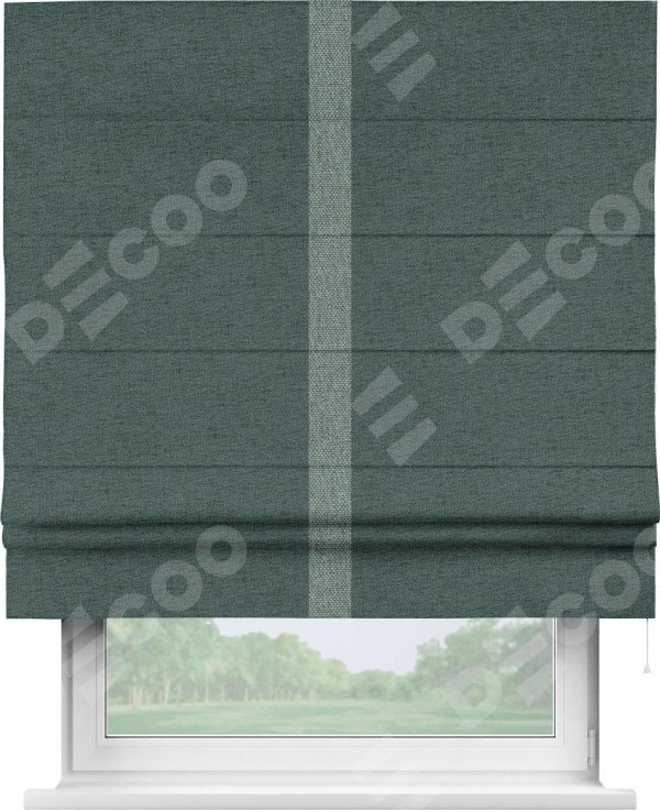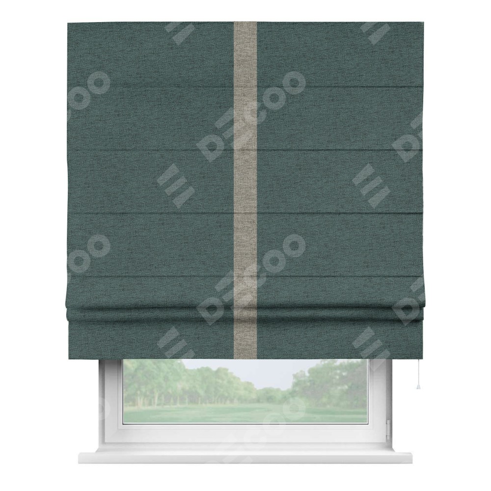 Римская штора «Кортин» с кантом Хайвэй, для проема, ткань стиф димаут сине-зелёный