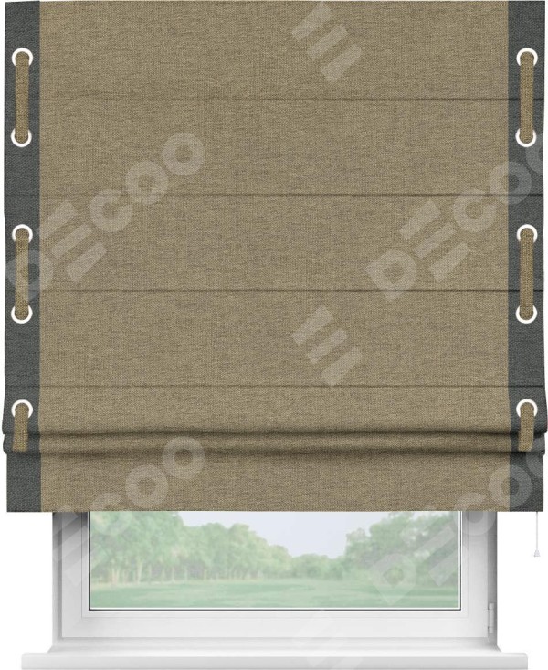 Римская штора «Кортин» с кантом Стрим Дуо (люверсы с пояском), для проема, ткань стиф димаут тёмно-бежевый