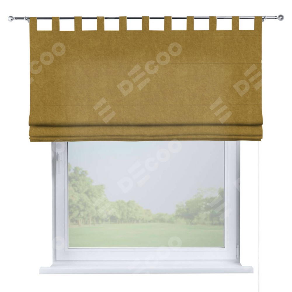 Римская штора производителя «Cortin», используется для проёма, пошита из ткани канвас горчица, артикул ткани v-476. Данная модель пошита на петлях, комплектуется на выбор круглым карнизом и подходит для монтажа на стену. Римская штора на петлях имеет простую систему регулировки высоты, отличительным преимуществом данной модели является простой способ монтажа. Достаточно повесить ее на трубу и штора готова!