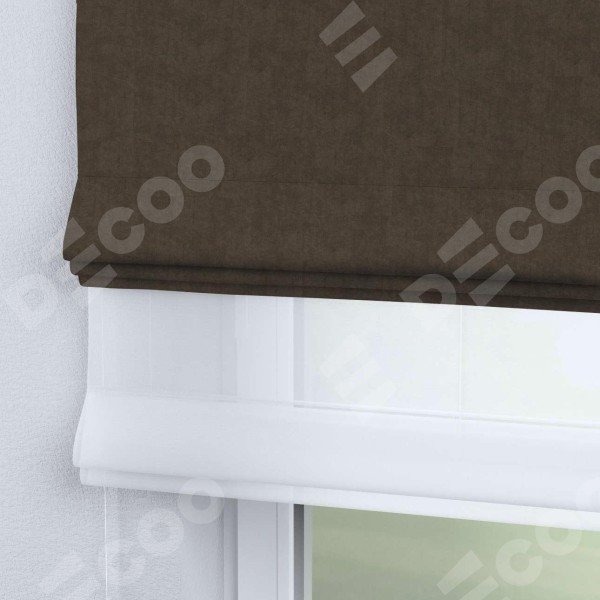 Римская штора день-ночь производителя «Cortin», используется для проёма, пошита из двух полотен, с лицевой стороны канвас коричневый артикул v-29, вторая ткань тюль (по стандарту комплектуется тюль белого цвета артикул V-01). Имеет универсальный механизм и подходит для монтажа: на потолок, на стену и в нишу.