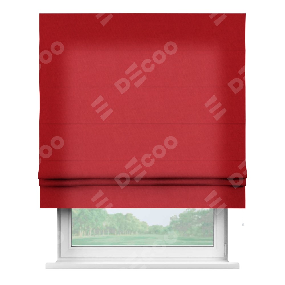 Римская штора производителя «Cortin», используется для проёма, пошита из ткани канвас красный, артикул ткани v-113. Имеет универсальный механизм и подходит для монтажа: на потолок, на стену и в нишу.