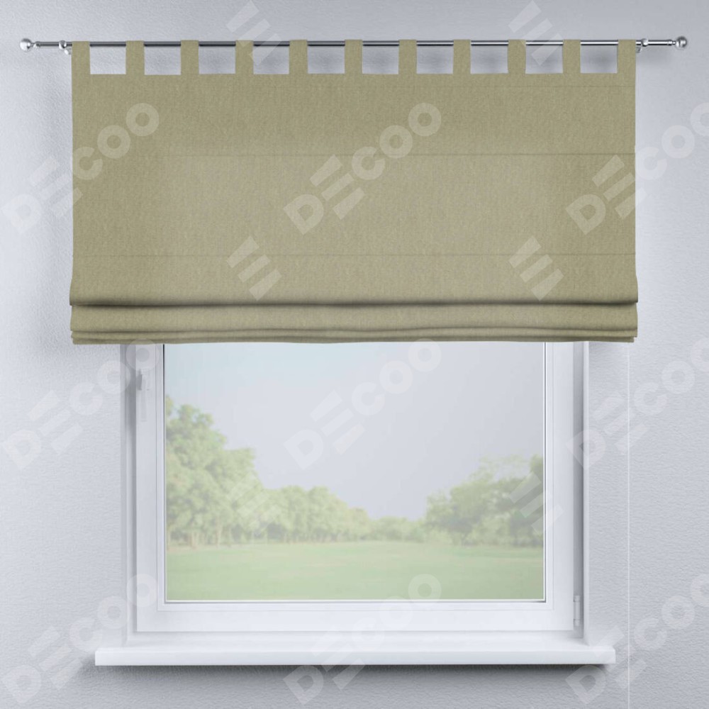 Римская штора производителя «Cortin», используется для проёма, пошита из ткани канвас латте, артикул ткани v-12490. Данная модель пошита на петлях, комплектуется на выбор круглым карнизом и подходит для монтажа на стену. Римская штора на петлях имеет простую систему регулировки высоты, отличительным преимуществом данной модели является простой способ монтажа. Достаточно повесить ее на трубу и штора готова!