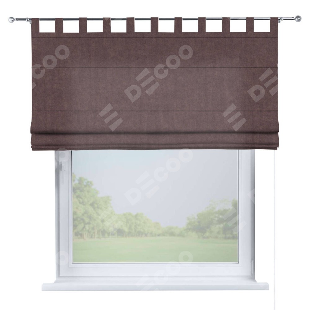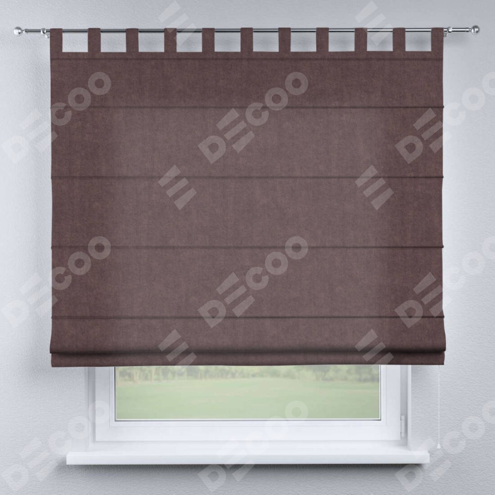 Римская штора производителя «Cortin», используется для проёма, пошита из ткани канвас махагон, артикул ткани v-37. Данная модель пошита на петлях, комплектуется на выбор круглым карнизом и подходит для монтажа на стену. Римская штора на петлях имеет простую систему регулировки высоты, отличительным преимуществом данной модели является простой способ монтажа. Достаточно повесить ее на трубу и штора готова!