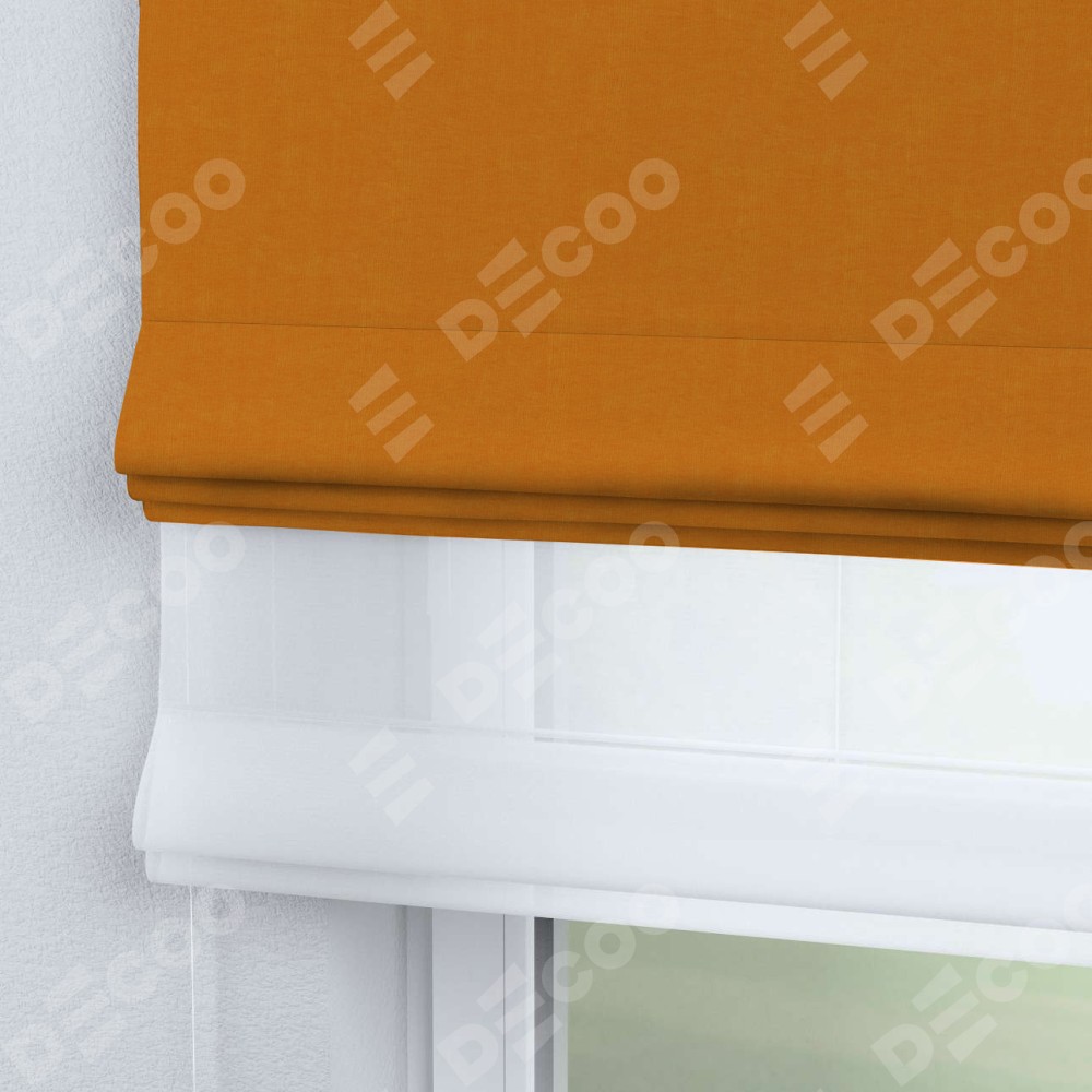 Римская штора день-ночь производителя «Cortin», используется для проёма, пошита из двух полотен, с лицевой стороны канвас оранжевый артикул v-106, вторая ткань тюль (по стандарту комплектуется тюль белого цвета артикул V-01). Имеет универсальный механизм и подходит для монтажа: на потолок, на стену и в нишу.