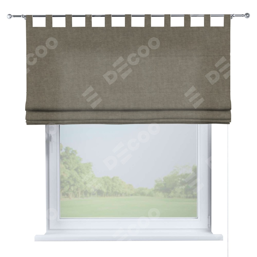 Римская штора производителя «Cortin», используется для проёма, пошита из ткани канвас серо-бежевый, артикул ткани v-224. Данная модель пошита на петлях, комплектуется на выбор круглым карнизом и подходит для монтажа на стену. Римская штора на петлях имеет простую систему регулировки высоты, отличительным преимуществом данной модели является простой способ монтажа. Достаточно повесить ее на трубу и штора готова!