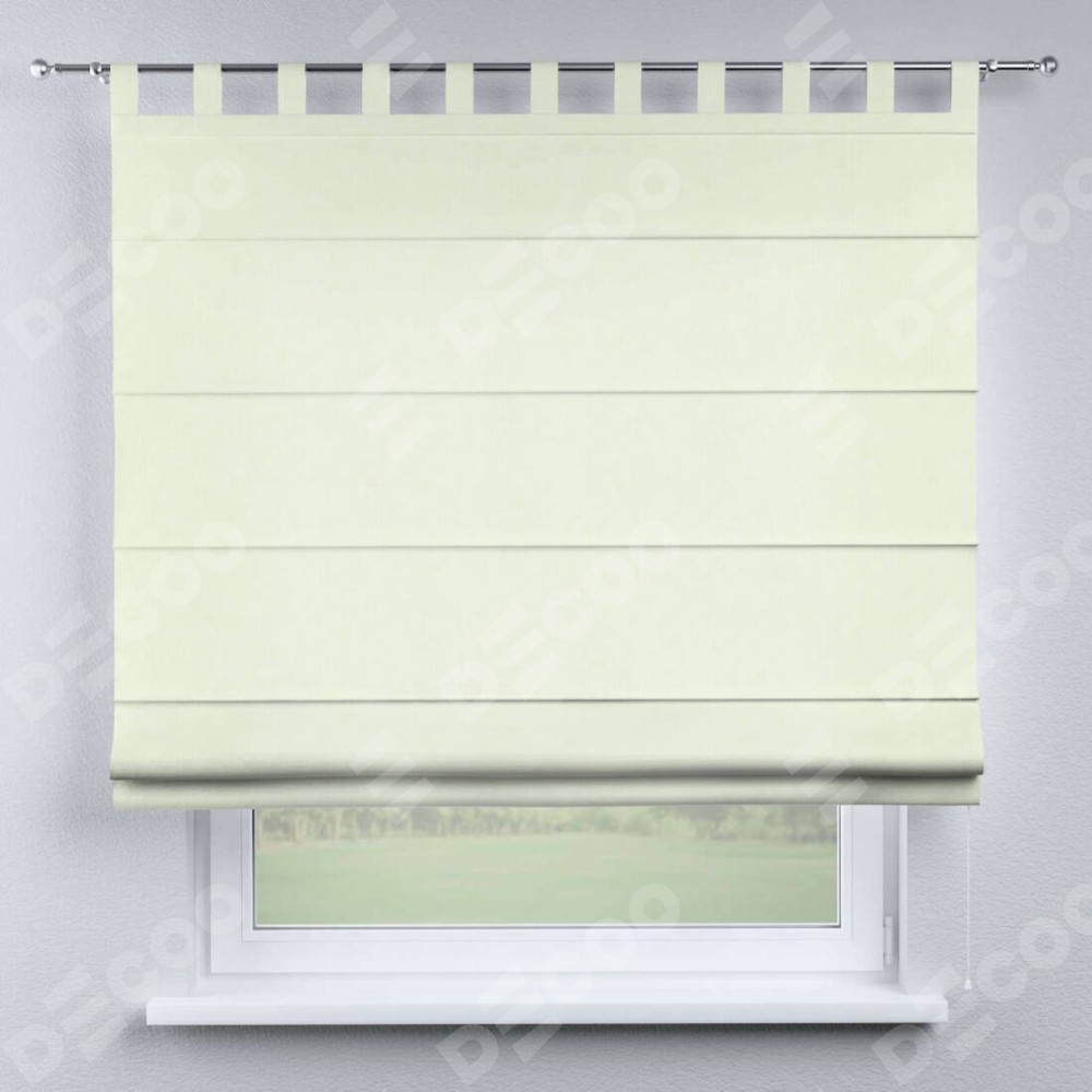 Римская штора производителя «Cortin», используется для проёма, пошита из ткани канвас сливочный, артикул ткани v-94. Данная модель пошита на петлях, комплектуется на выбор круглым карнизом и подходит для монтажа на стену. Римская штора на петлях имеет простую систему регулировки высоты, отличительным преимуществом данной модели является простой способ монтажа. Достаточно повесить ее на трубу и штора готова!