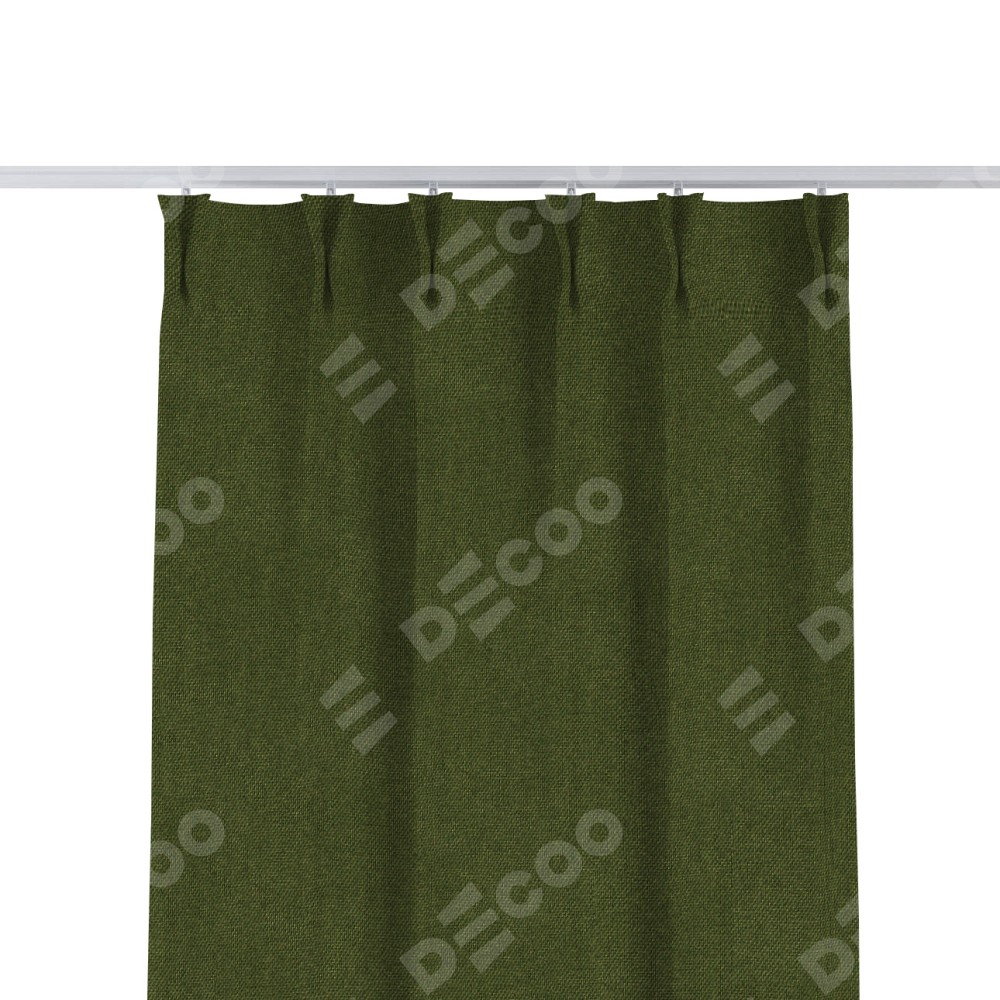 Комплект прямых штор, от производителя «Cortin», пошиты из ткани лён димаут салатовый, артикул ткани 91002. С изнаночной стороны в верхней части штор пристрачивается шторная лента с декоративными складками «Кустик». Для создания элегантных складок прямые шторы шьются по стандарту с коэффициентом 1:2 (на 100 см. ширины проёма 200 см. ширины ткани).