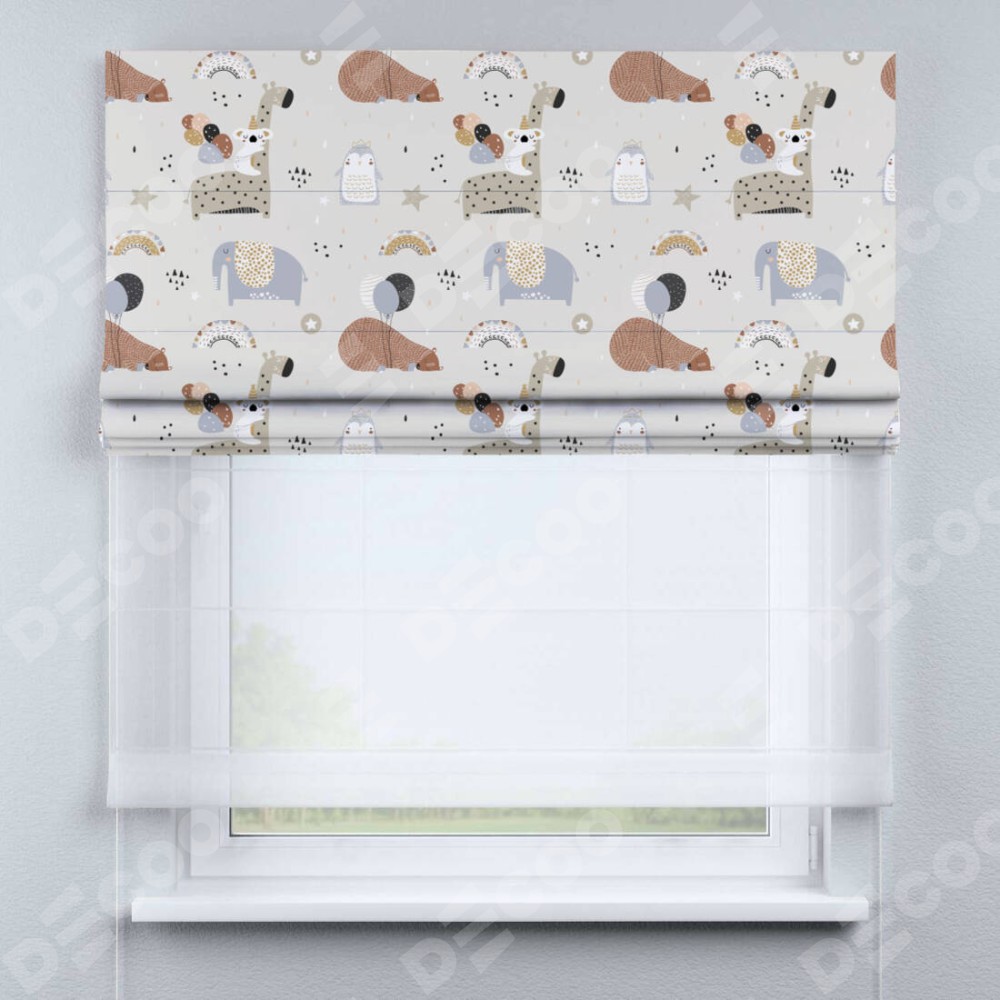 Римская штора «Кортин» день-ночь «Вечеринка животных»