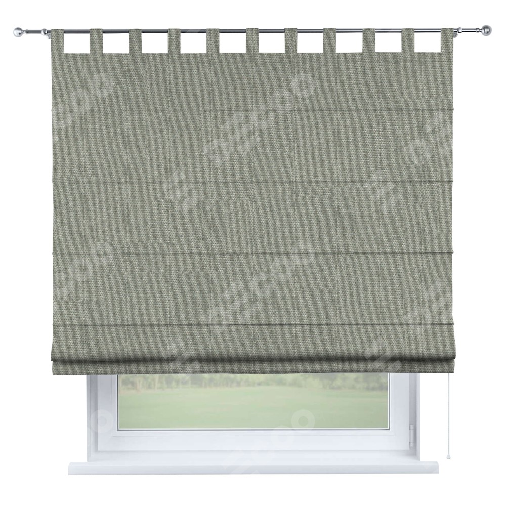 Римская штора производителя «Cortin», используется для проёма, пошита из ткани лён димаут серый, артикул ткани 91009. Данная модель пошита на петлях, комплектуется на выбор круглым карнизом и подходит для монтажа на стену. Римская штора на петлях имеет простую систему регулировки высоты, отличительным преимуществом данной модели является простой способ монтажа. Достаточно повесить ее на трубу и штора готова!