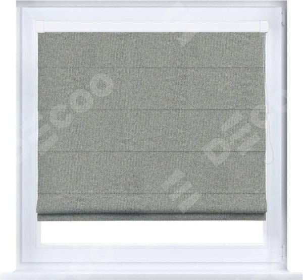 Римская штора производителя «Cortin», устанавливается на створку окна, пошита из ткани лён димаут серый, артикул 91009. Штора шьётся по индивидуальным размерам, для данного типа римской шторы возможная ширина от 35 до 150 см., высота до 250 см.