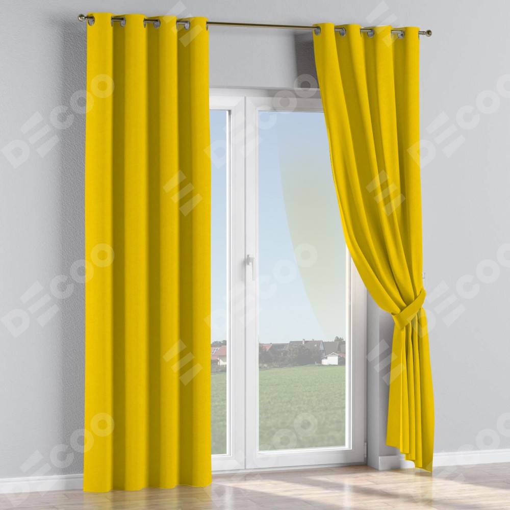 Комплект прямых штор, от производителя «Cortin», пошиты из ткани канвас желтый, артикул ткани v-344. Данная модель пошита на люверсах, комплектуется на выбор круглым карнизом и подходит для монтажа на стену или потолок. Прямые шторы на люверсах шьются по стандарту с коэффициентом 1/2 (на 100 см. ширины проёма 200 см. ширины ткани), отличительным преимуществом данной модели является простой способ монтажа. Достаточно повесить ее на трубу и штора готова!