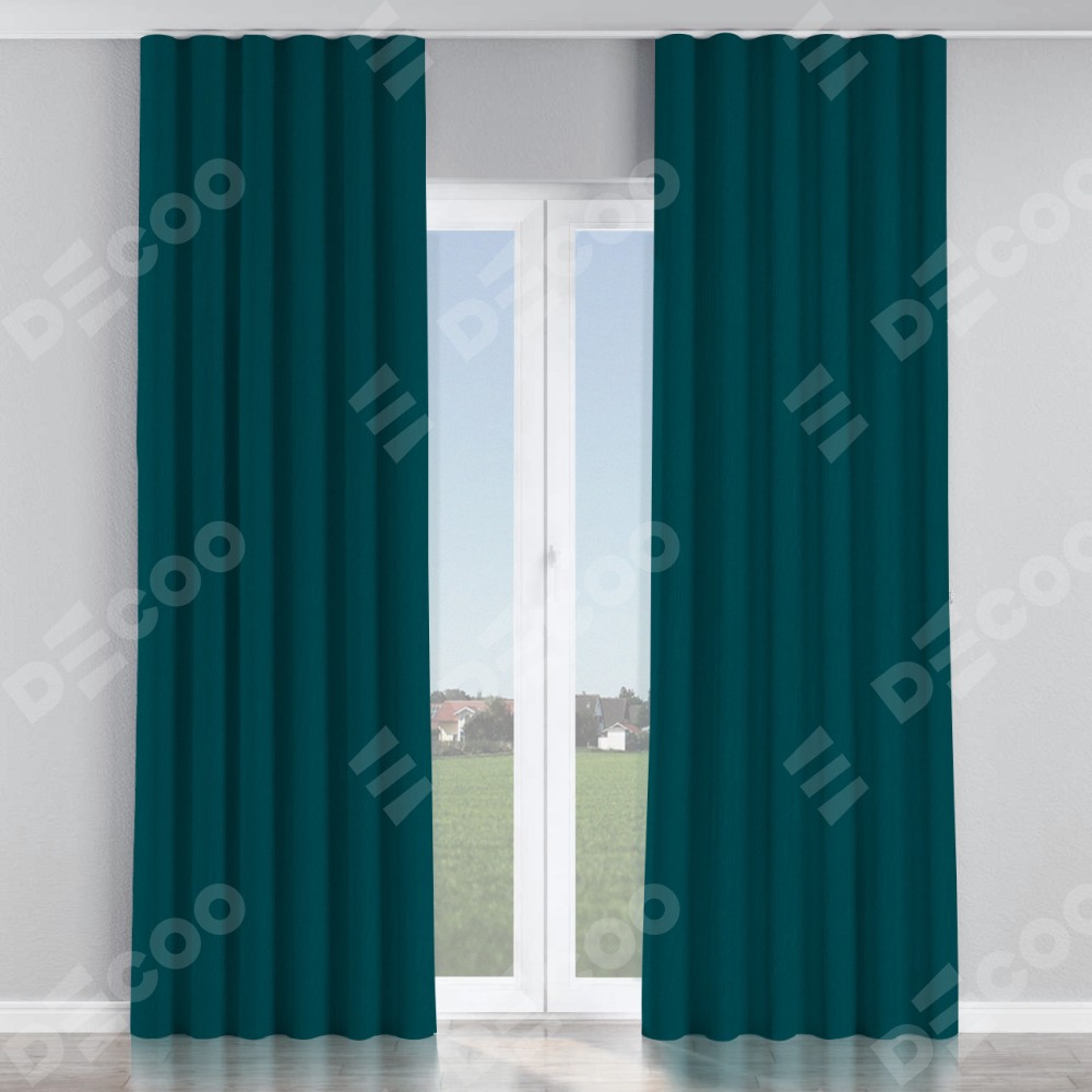 Комплект прямых штор, от производителя «Cortin», пошиты из ткани канвас изумрудный, артикул ткани v-12487. С изнаночной стороны в верхней части штор пристрачивается шторная лента с декоративными складками «Волна». Для создания элегантных складок прямые шторы шьются по стандарту с коэффициентом 1:2 (на 100 см. ширины проёма 200 см. ширины ткани).