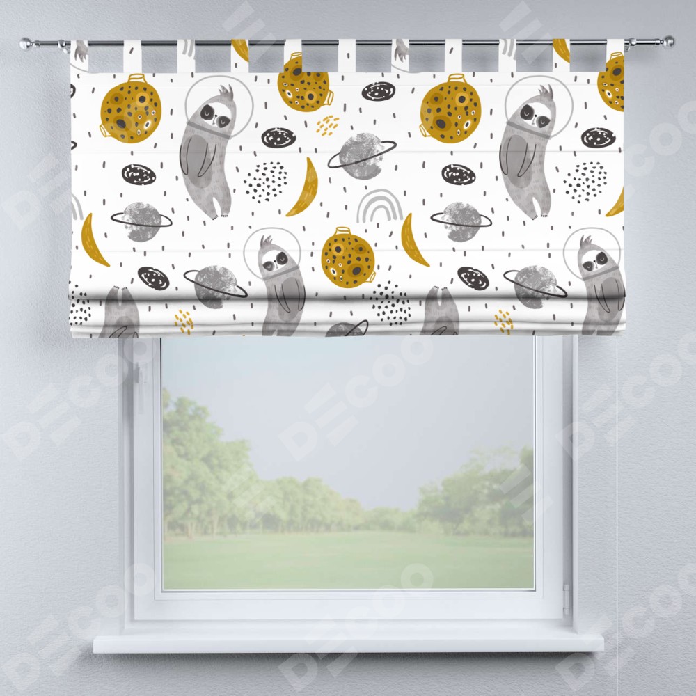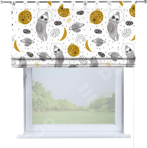 Римская штора производителя «Cortin», используется для проёма, пошита из ткани блэкаут с нанесением сублимационной печати «Ленивец в шлеме». Данная модель пошита на петлях, комплектуется на выбор круглым карнизом и подходит для монтажа на стену. Римская штора на петлях имеет простую систему регулировки высоты, отличительным преимуществом данной модели является простой способ монтажа. Достаточно повесить ее на трубу и штора готова!