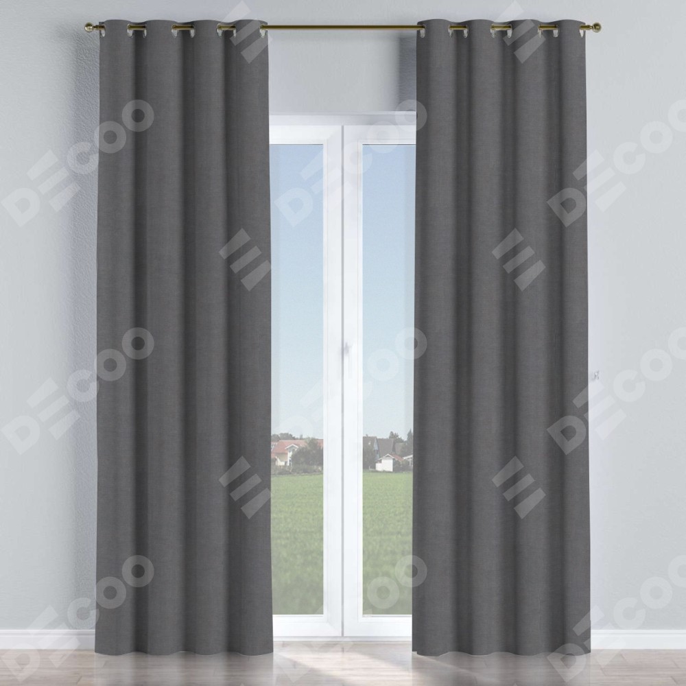 Комплект прямых штор, от производителя «Cortin», пошиты из ткани канвас мокрый асфальт, артикул ткани v-1083. Данная модель пошита на люверсах, комплектуется на выбор круглым карнизом и подходит для монтажа на стену или потолок. Прямые шторы на люверсах шьются по стандарту с коэффициентом 1/2 (на 100 см. ширины проёма 200 см. ширины ткани), отличительным преимуществом данной модели является простой способ монтажа. Достаточно повесить ее на трубу и штора готова!
