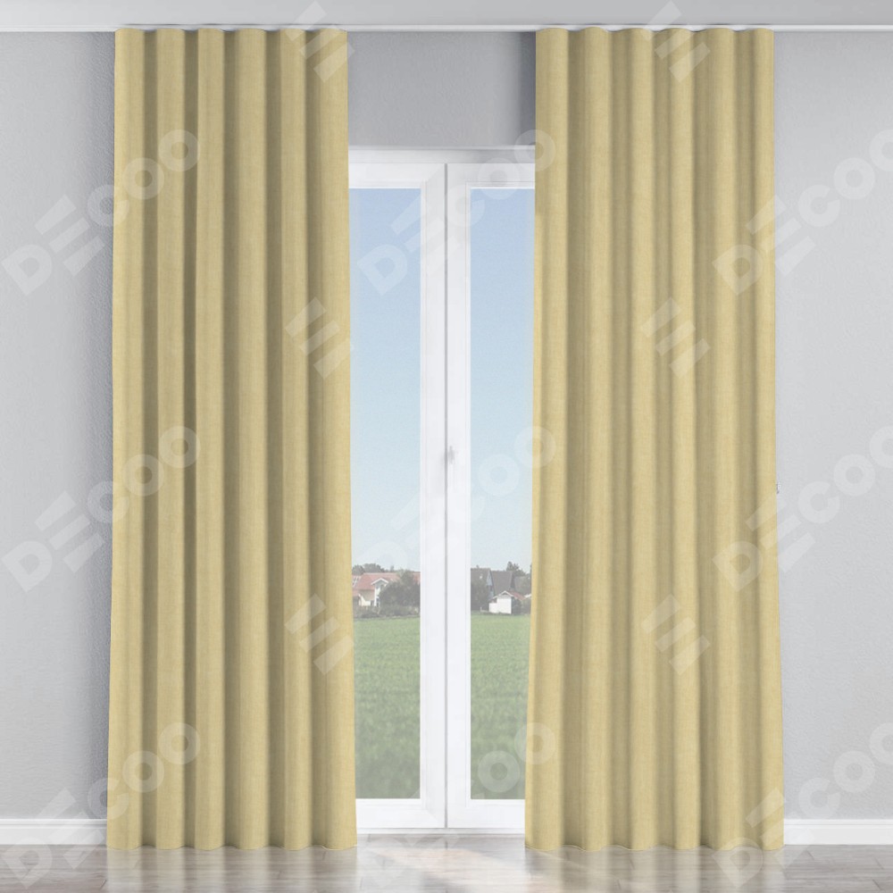 Комплект прямых штор, от производителя «Cortin», пошиты из ткани канвас тёмно-бежевый, артикул ткани v-196. С изнаночной стороны в верхней части штор пристрачивается шторная лента с декоративными складками «Волна». Для создания элегантных складок прямые шторы шьются по стандарту с коэффициентом 1:2 (на 100 см. ширины проёма 200 см. ширины ткани).