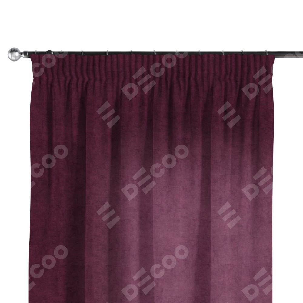 Комплект прямых штор, от производителя «Cortin», пошиты из ткани канвас фиолетовый, артикул ткани v-99. С изнаночной стороны в верхней части штор пристрачивается шторная лента с декоративными складками «Карандаш». Для создания элегантных складок прямые шторы шьются по стандарту с коэффициентом 1:2 (на 100 см. ширины проёма 200 см. ширины ткани).