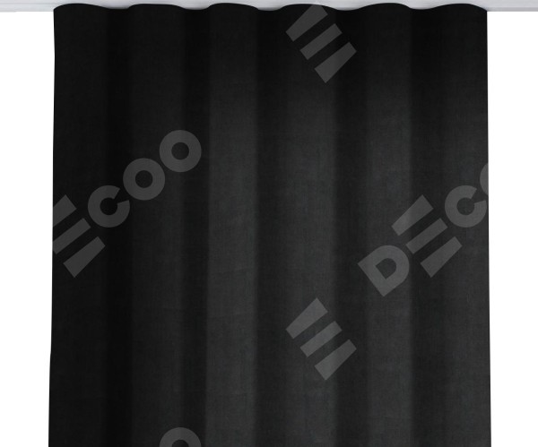 Комплект прямых штор, от производителя «Cortin», пошиты из ткани канвас черный, артикул ткани v-194. С изнаночной стороны в верхней части штор пристрачивается шторная лента с декоративными складками «Волна». Для создания элегантных складок прямые шторы шьются по стандарту с коэффициентом 1:2 (на 100 см. ширины проёма 200 см. ширины ткани).