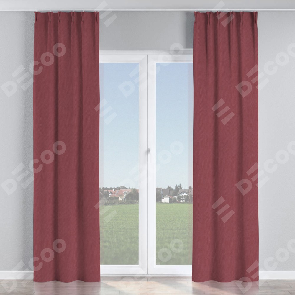 Комплект прямых штор, от производителя «Cortin», пошиты из ткани канвас ягодный, артикул ткани v-28. С изнаночной стороны в верхней части штор пристрачивается шторная лента с декоративными складками «Кустик». Для создания элегантных складок прямые шторы шьются по стандарту с коэффициентом 1:2 (на 100 см. ширины проёма 200 см. ширины ткани).