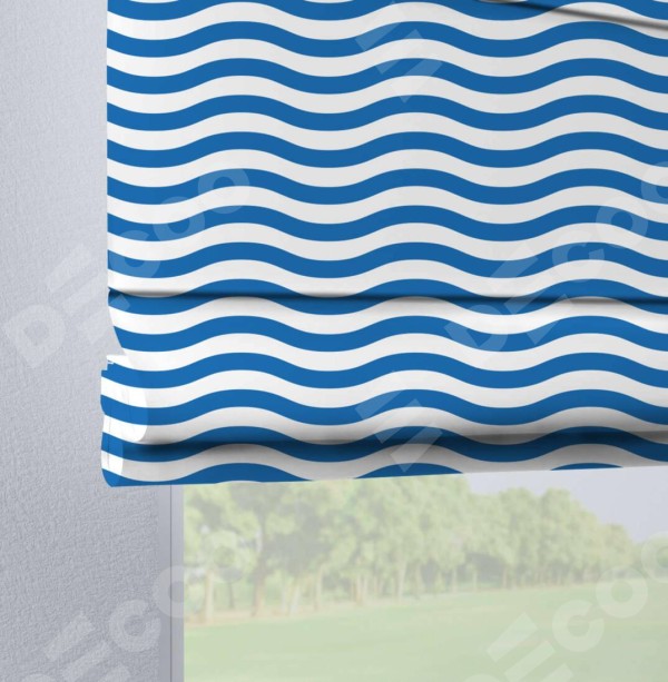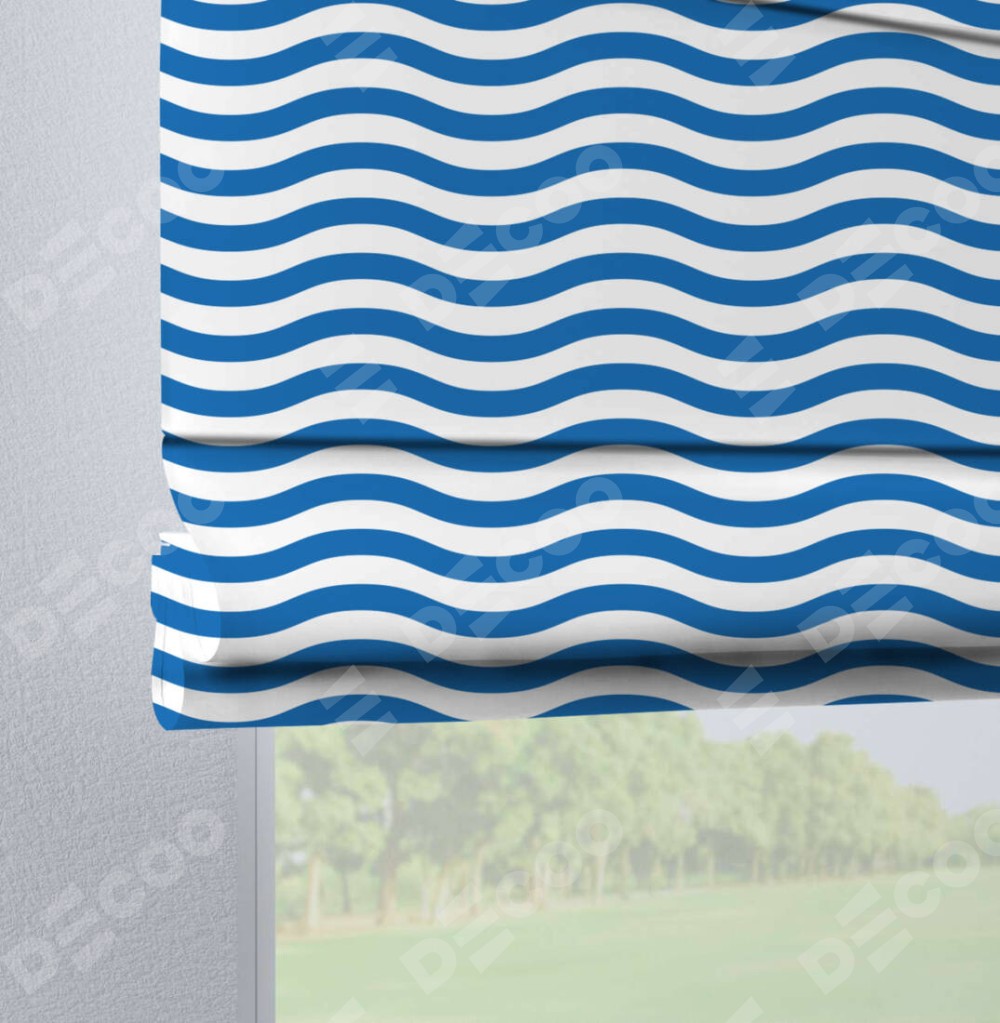 Римская штора производителя «Cortin», используется для проёма, пошита из ткани блэкаут с нанесением сублимационной печати «Волнистые линии». Данная модель пошита на петлях, комплектуется на выбор круглым карнизом и подходит для монтажа на стену. Римская штора на петлях имеет простую систему регулировки высоты, отличительным преимуществом данной модели является простой способ монтажа. Достаточно повесить ее на трубу и штора готова!