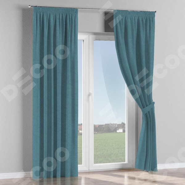 Комплект прямых штор, от производителя «Cortin», пошиты из ткани лён димаут светло-синий, артикул ткани 91007. С изнаночной стороны в верхней части штор пристрачивается шторная лента с декоративными складками «Карандаш». Для создания элегантных складок прямые шторы шьются по стандарту с коэффициентом 1:2 (на 100 см. ширины проёма 200 см. ширины ткани).