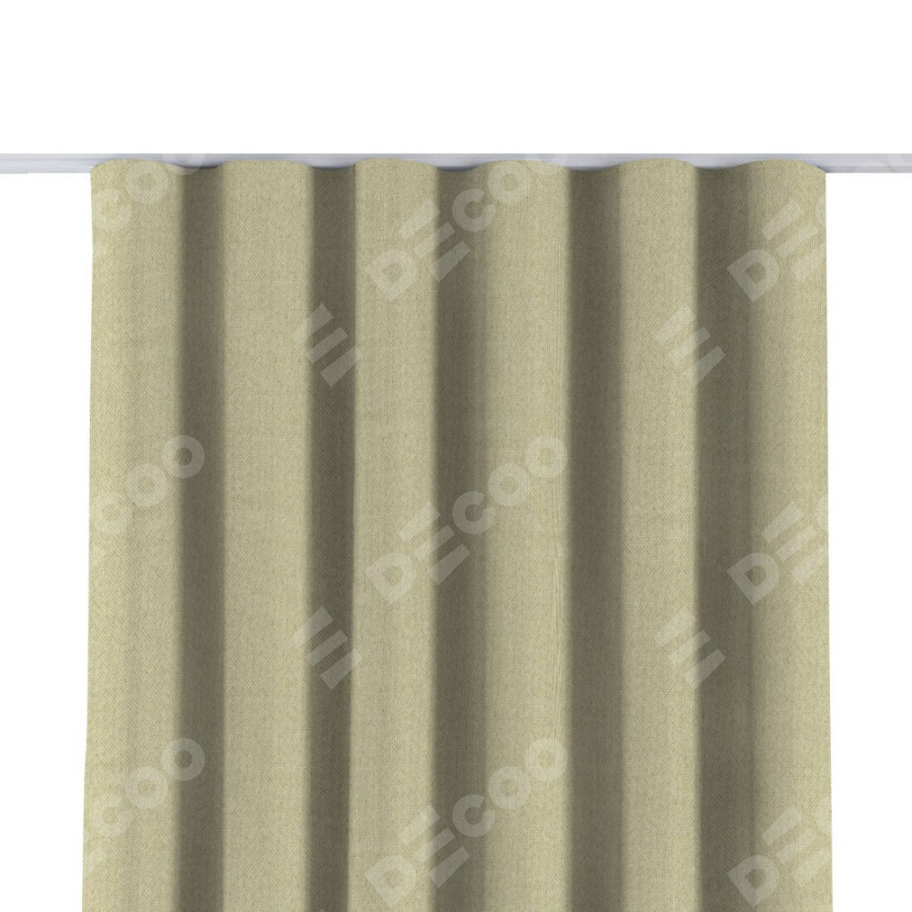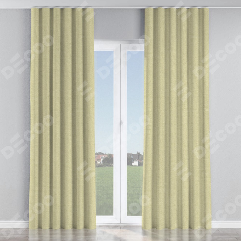 Комплект прямых штор, от производителя «Cortin», пошиты из ткани лён димаут шампань, артикул ткани 90994. С изнаночной стороны в верхней части штор пристрачивается шторная лента с декоративными складками «Волна». Для создания элегантных складок прямые шторы шьются по стандарту с коэффициентом 1:2 (на 100 см. ширины проёма 200 см. ширины ткани).