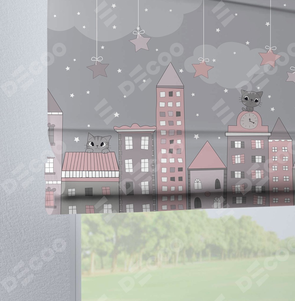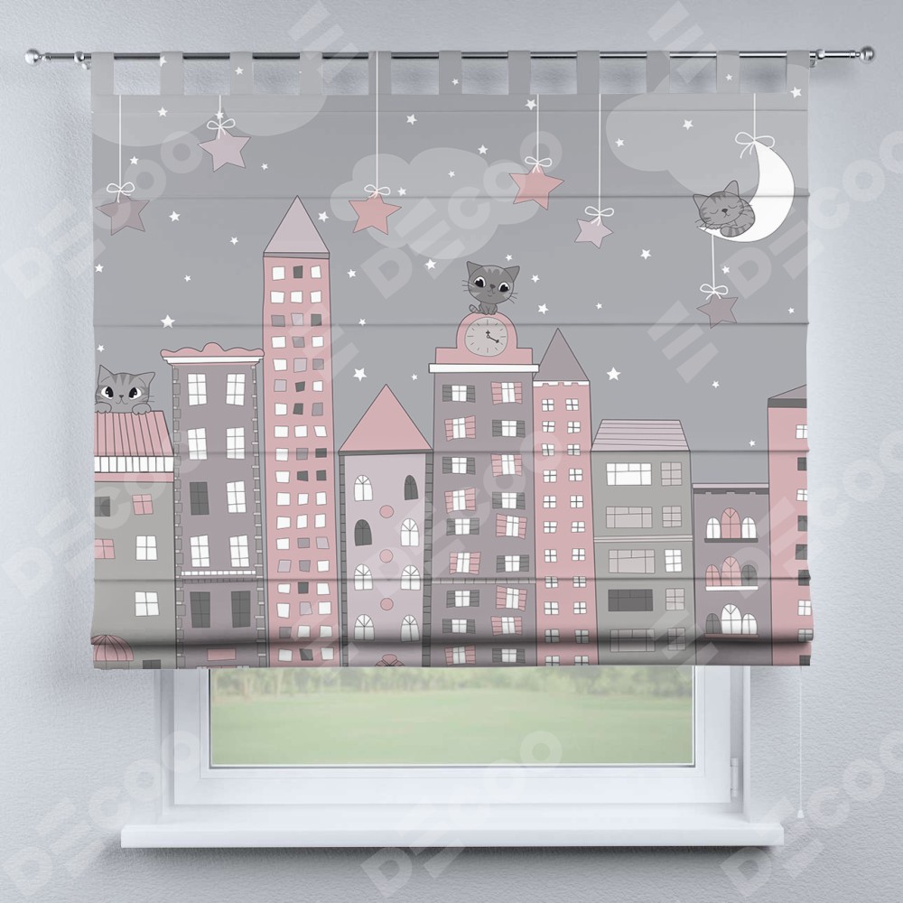 Римская штора производителя «Cortin», используется для проёма, пошита из ткани блэкаут с нанесением сублимационной печати «Вечерний город». Данная модель пошита на петлях, комплектуется на выбор круглым карнизом и подходит для монтажа на стену. Римская штора на петлях имеет простую систему регулировки высоты, отличительным преимуществом данной модели является простой способ монтажа. Достаточно повесить ее на трубу и штора готова!
