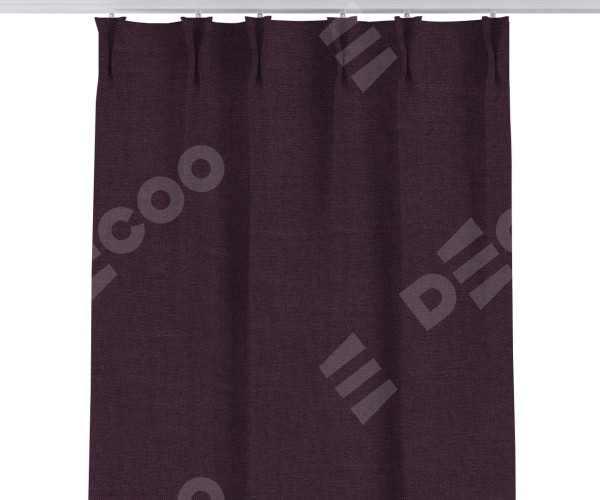 Комплект прямых штор, от производителя «Cortin», пошиты из ткани лён димаут фиолетовый, артикул ткани 16267. С изнаночной стороны в верхней части штор пристрачивается шторная лента с декоративными складками «Кустик». Для создания элегантных складок прямые шторы шьются по стандарту с коэффициентом 1:2 (на 100 см. ширины проёма 200 см. ширины ткани).