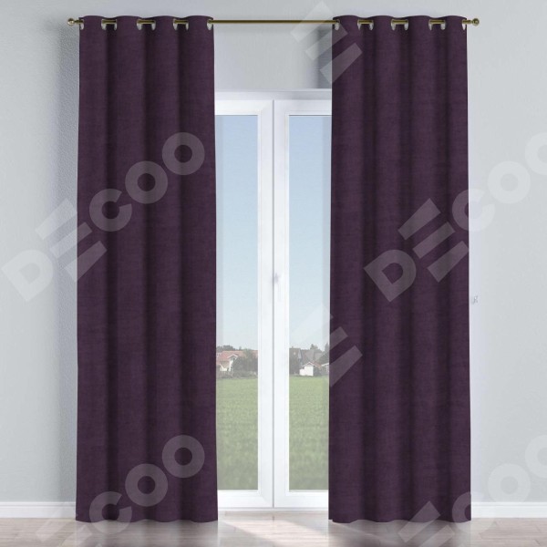 Комплект прямых штор, от производителя «Cortin», пошиты из ткани вельвет тёмно-фиолетовый, артикул ткани 72403. Данная модель пошита на люверсах, комплектуется на выбор круглым карнизом и подходит для монтажа на стену или потолок. Прямые шторы на люверсах шьются по стандарту с коэффициентом 1/2 (на 100 см. ширины проёма 200 см. ширины ткани), отличительным преимуществом данной модели является простой способ монтажа. Достаточно повесить ее на трубу и штора готова!