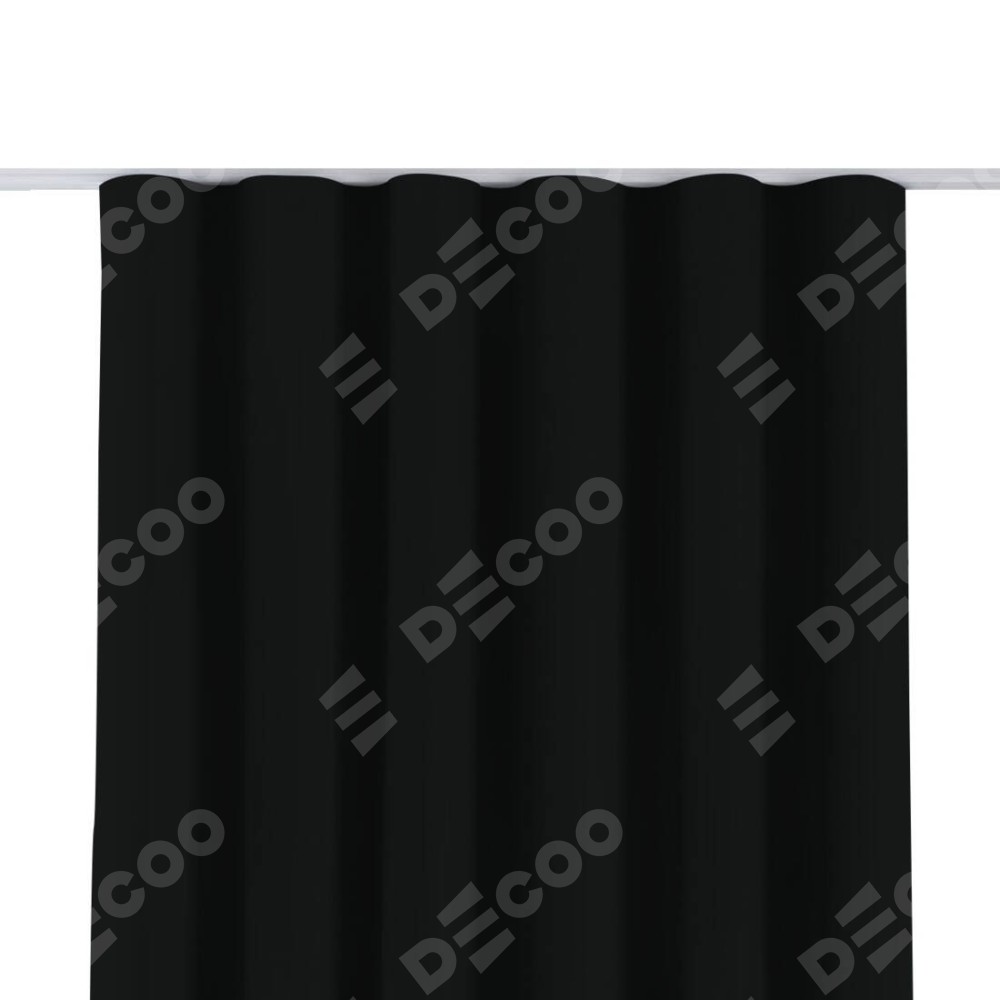 Комплект прямых штор, от производителя «Cortin», пошиты из ткани блэкаут однотонный черный, артикул ткани 91571−2. С изнаночной стороны в верхней части штор пристрачивается шторная лента с декоративными складками «Волна». Для создания элегантных складок прямые шторы шьются по стандарту с коэффициентом 1:2 (на 100 см. ширины проёма 200 см. ширины ткани).