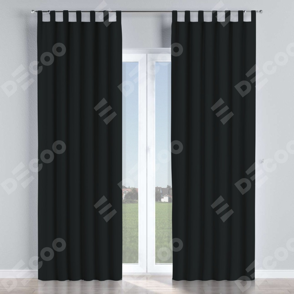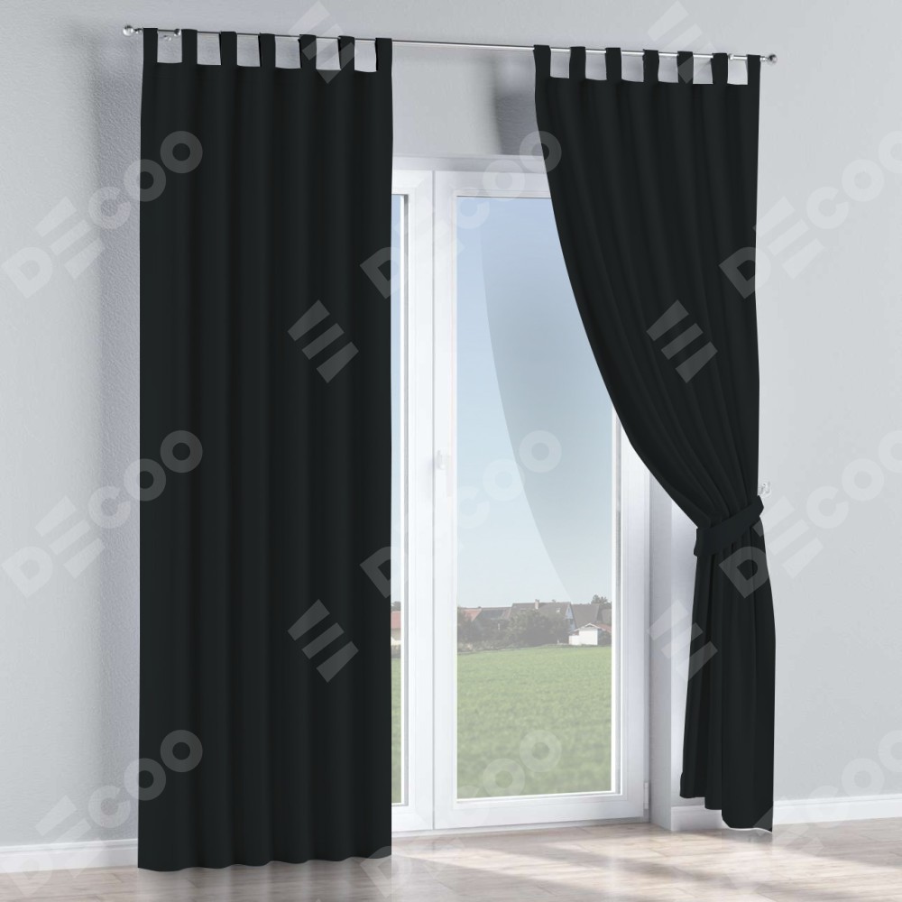 Комплект прямых штор, от производителя «Cortin», пошиты из ткани блэкаут однотонный черный, артикул ткани 91571−2. Данная модель пошита на петлях, комплектуется на выбор круглым карнизом и подходит для монтажа на стену или потолок. Прямые шторы на петлях шьются по стандарту с коэффициентом 1/2 (на 100 см. ширины проёма 200 см. ширины ткани), отличительным преимуществом данной модели является простой способ монтажа. Достаточно повесить ее на трубу и штора готова!