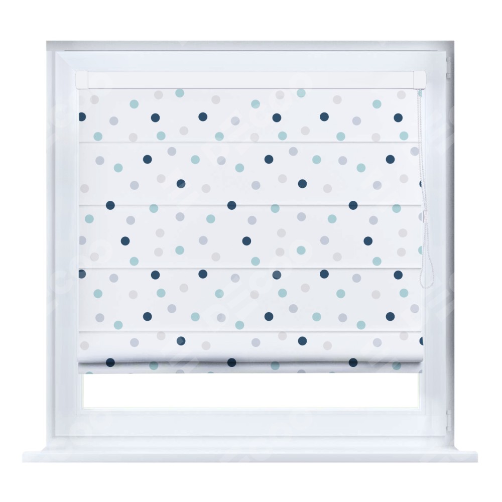 Римская штора производителя «Cortin», устанавливается на створку окна, пошита из ткани блэкаут с нанесением сублимационной печати «Точки». Штора шьётся по индивидуальным размерам, для данного типа римской шторы возможная ширина от 35 до 150 см., высота до 250 см.