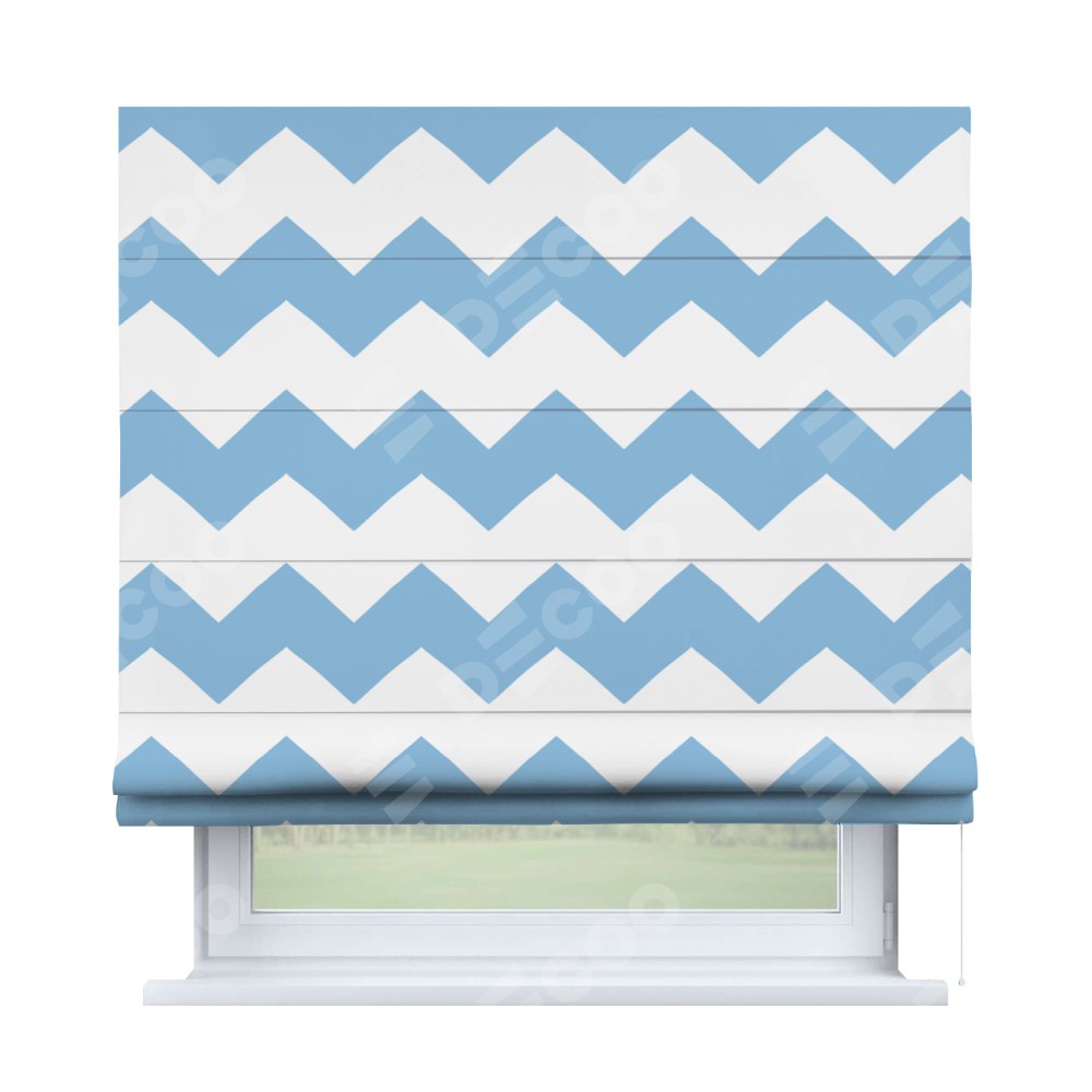 Римская штора производителя «Cortin», используется для проёма, пошита из ткани блэкаут с нанесением сублимационной печати «Зигзаг крупный». Имеет универсальный механизм и подходит для монтажа: на потолок, на стену и в нишу.