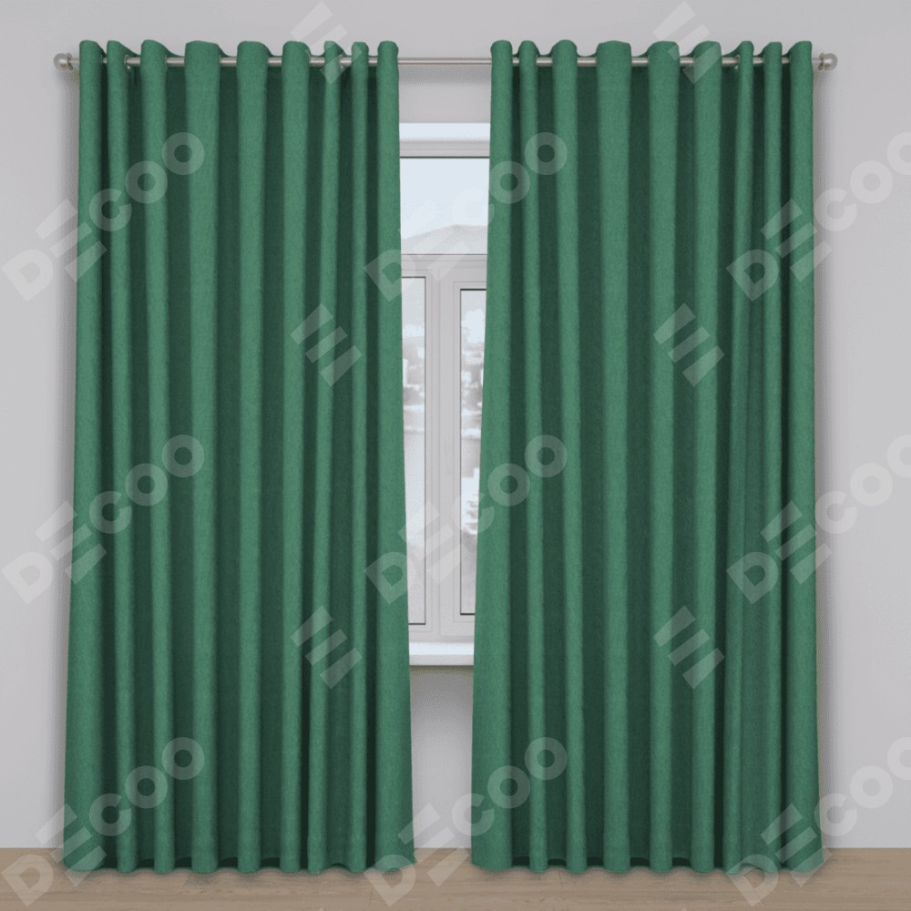 Комплект прямых штор, от производителя «Cortin», пошиты из ткани твид блэкаут зеленый, артикул ткани 21589. Данная модель пошита на люверсах, комплектуется на выбор круглым карнизом и подходит для монтажа на стену. Прямые шторы на люверсах шьются по стандарту с коэффициентом 1/2 (на 100 см. ширины проёма 200 см. ширины ткани), отличительным преимуществом данной модели является простой способ монтажа. Достаточно повесить ее на трубу и штора готова!