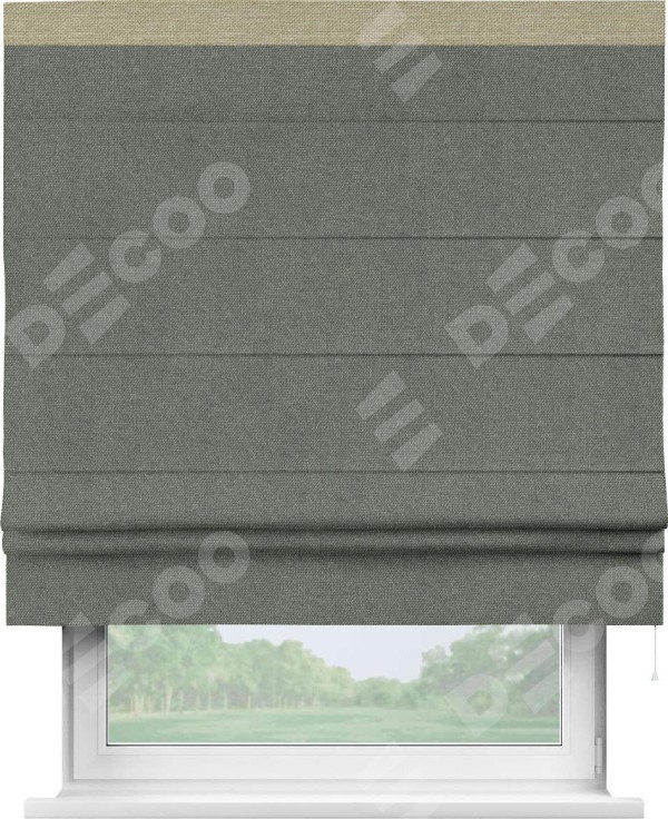 Римская штора «Кортин» с кантом Кинг, для проема, ткань лён димаут, тёмно-серый