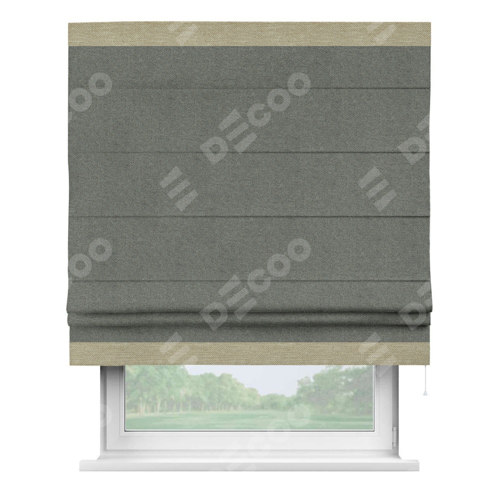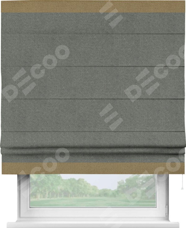Римская штора «Кортин» с кантом Горизонт, для проема, ткань лён димаут, тёмно-серый