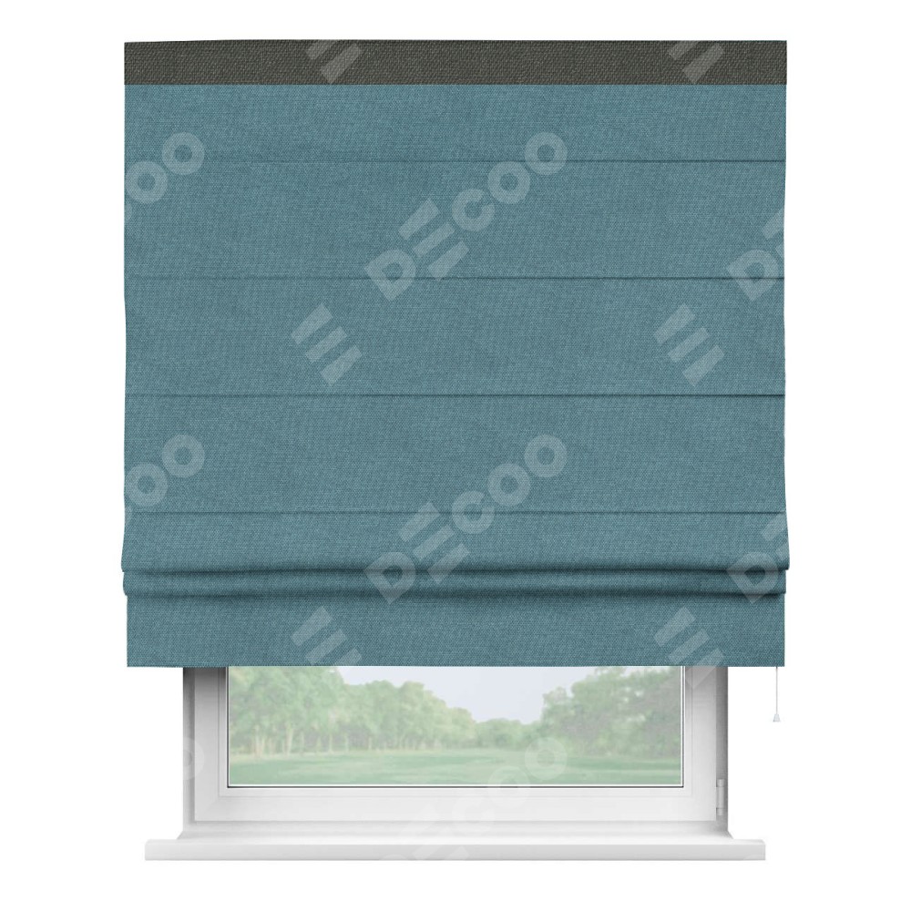 Римская штора «Кортин» для проема, лён димаут светло-синий с кантом Кинг