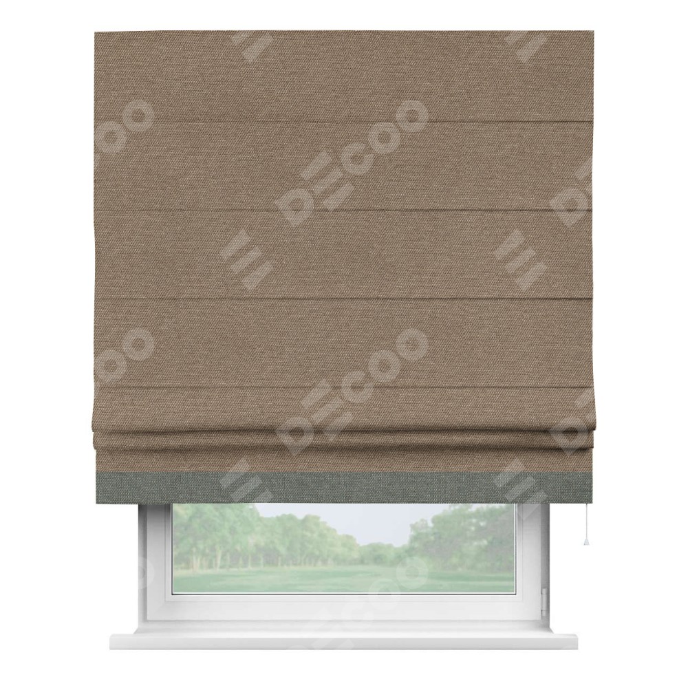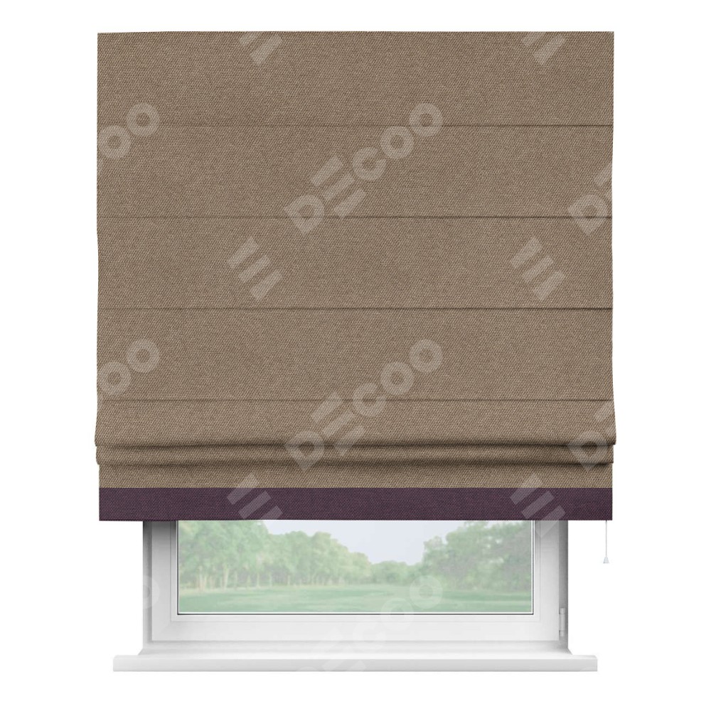 Римская штора «Кортин» для проема, лён димаут коричневый с кантом Джестер