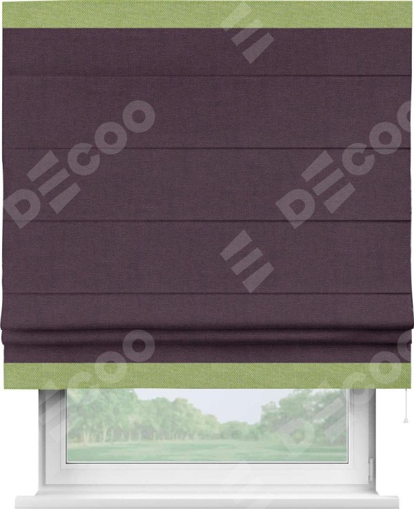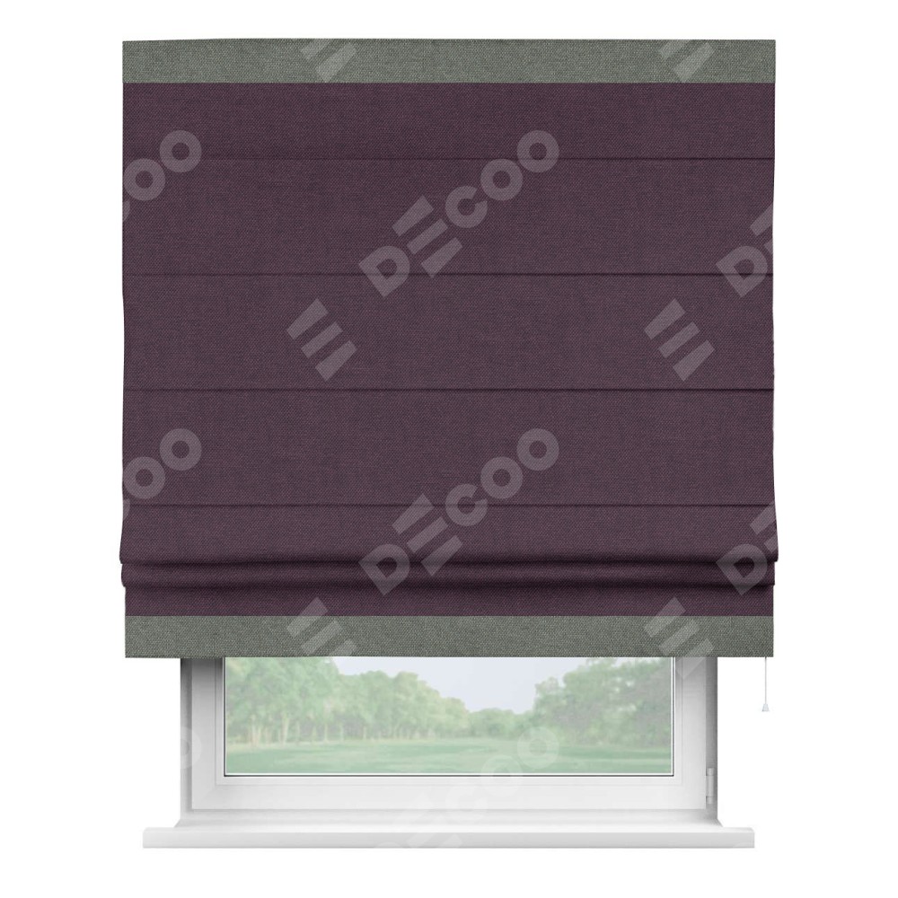 Римская штора «Кортин» для проема, лён димаут фиолетовый с кантом Горизонт