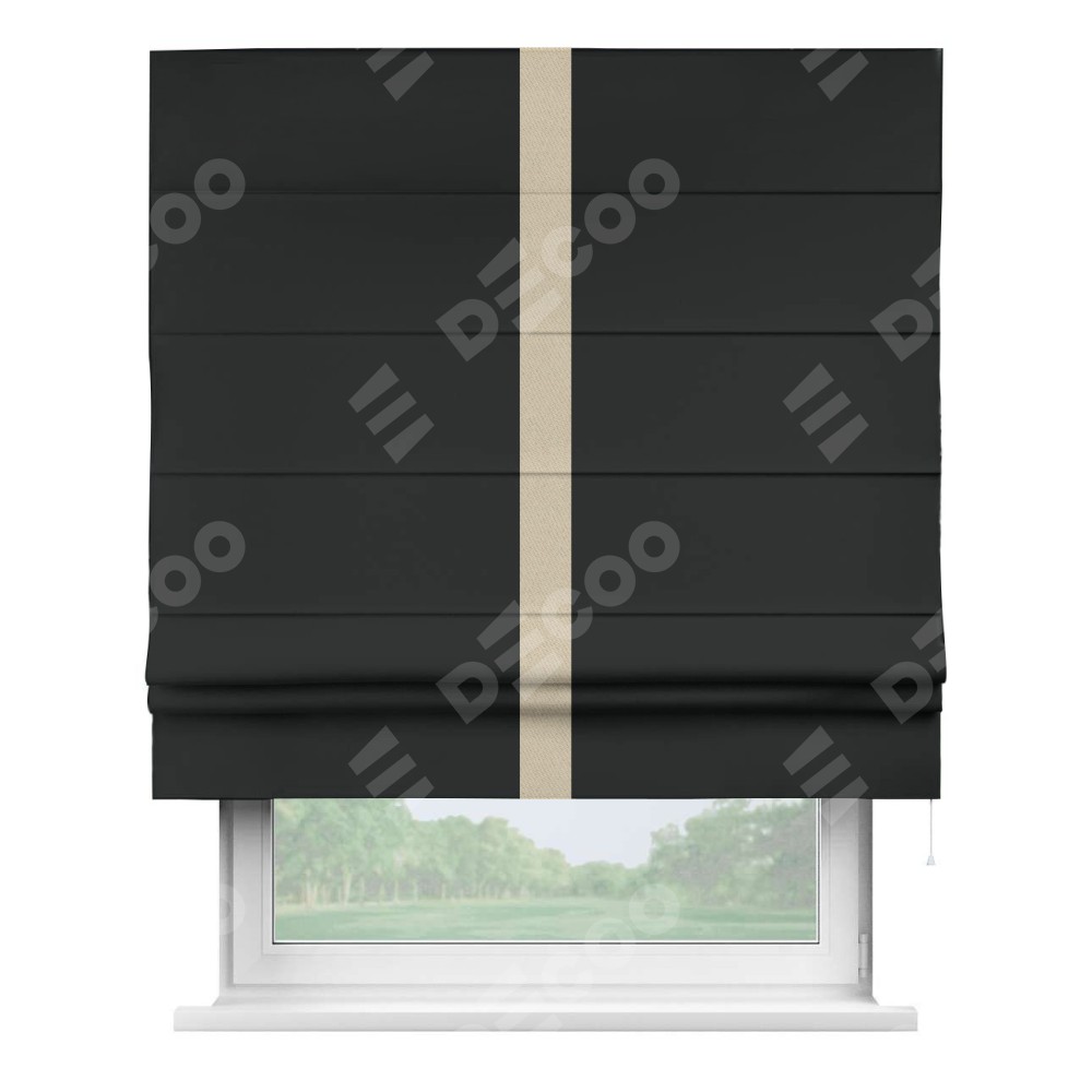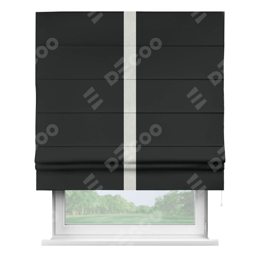 Римская штора «Кортин» для проема, блэкаут однотонный черный с кантом Хайвэй