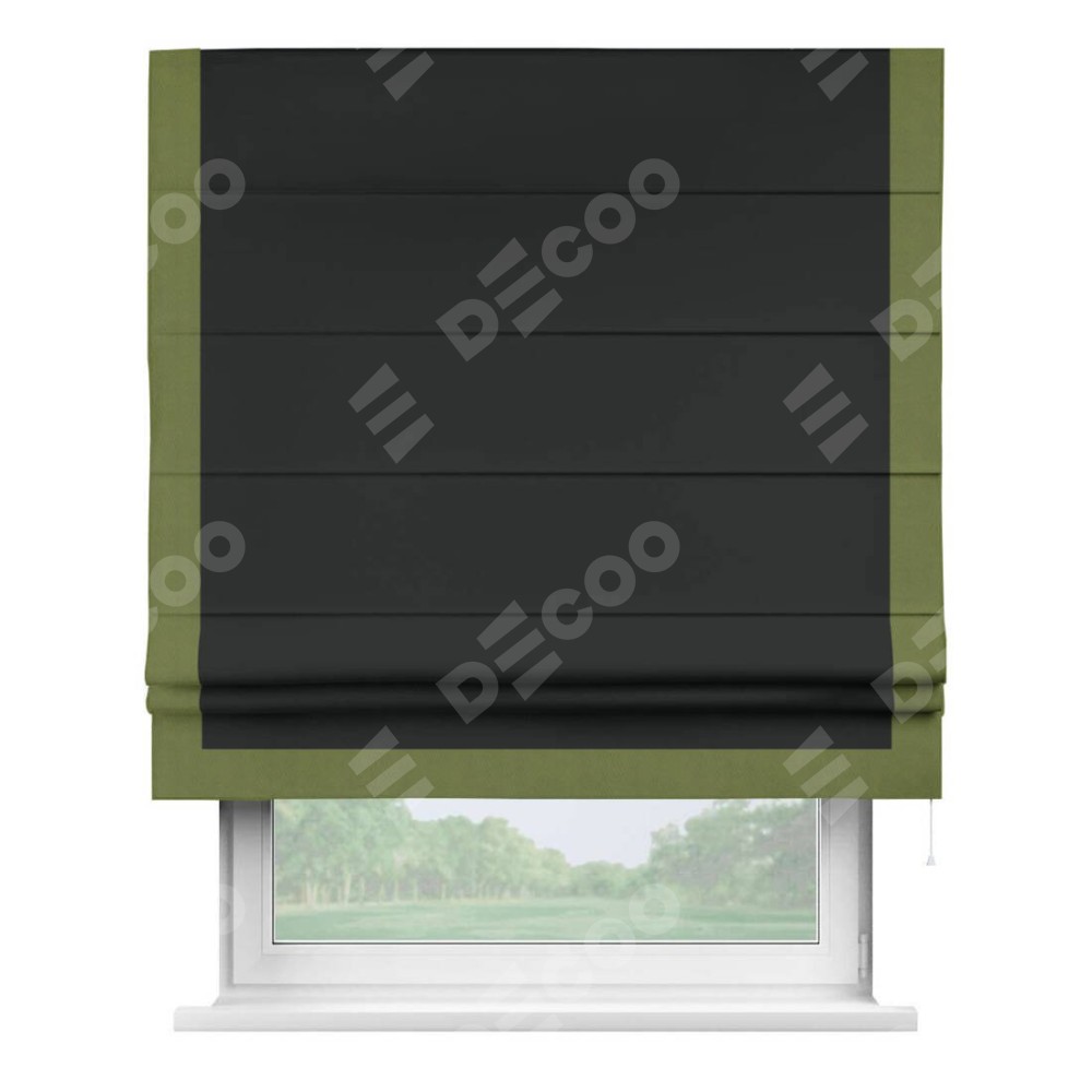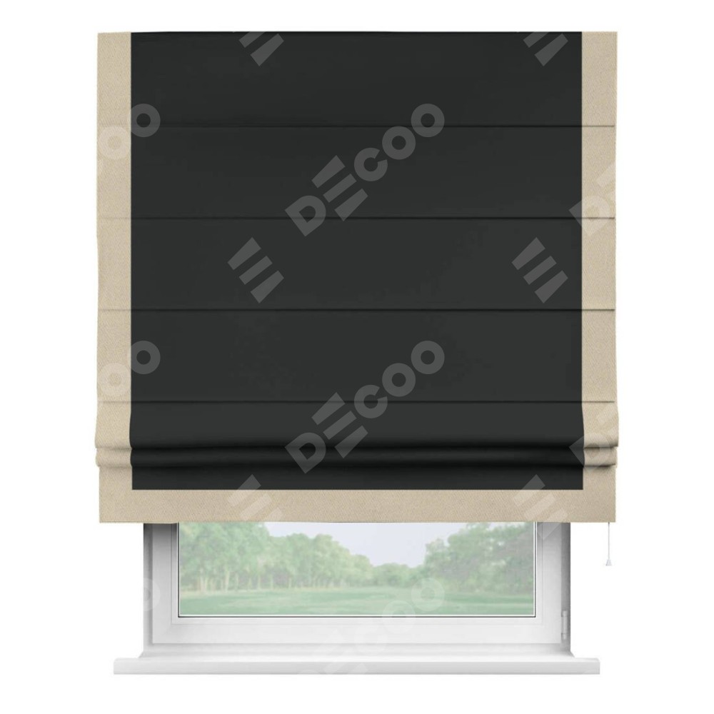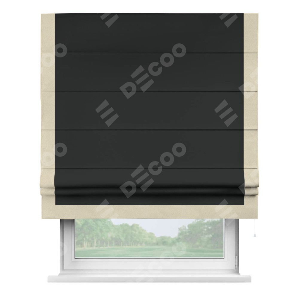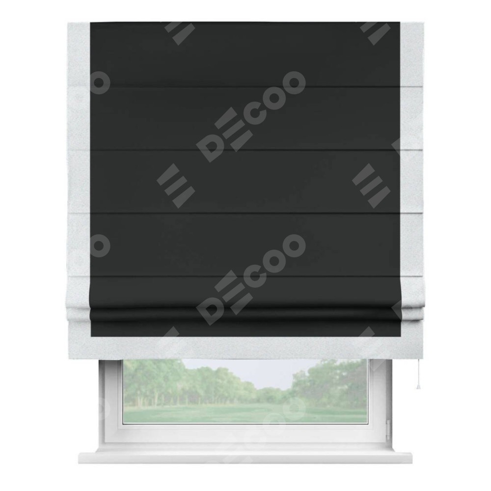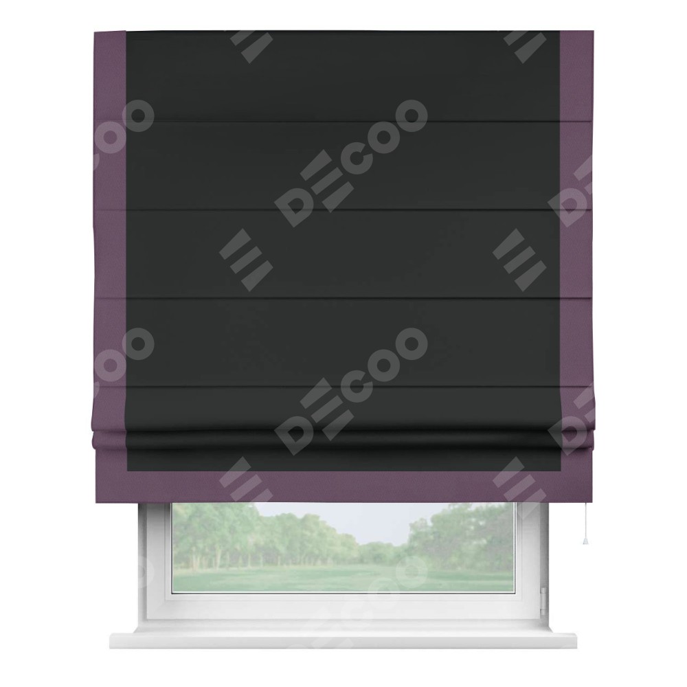 Римская штора «Кортин» для проема, блэкаут однотонный черный с кантом Виктория