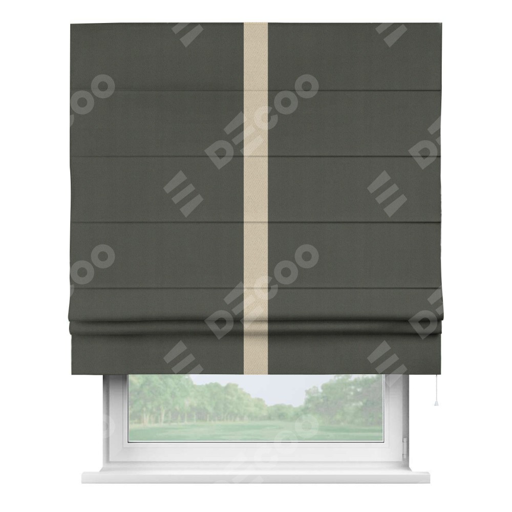 Римская штора «Кортин» для проема, блэкаут однотонный дымчато-серый с кантом Хайвэй