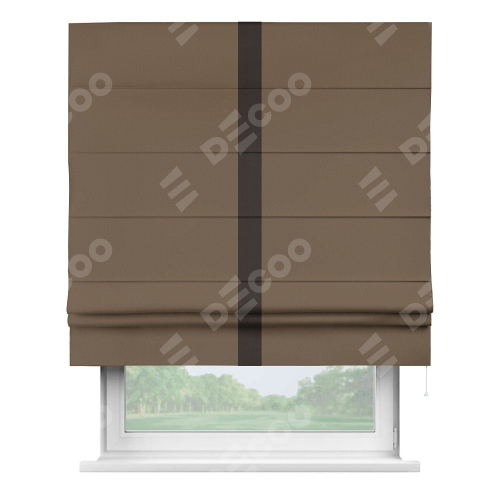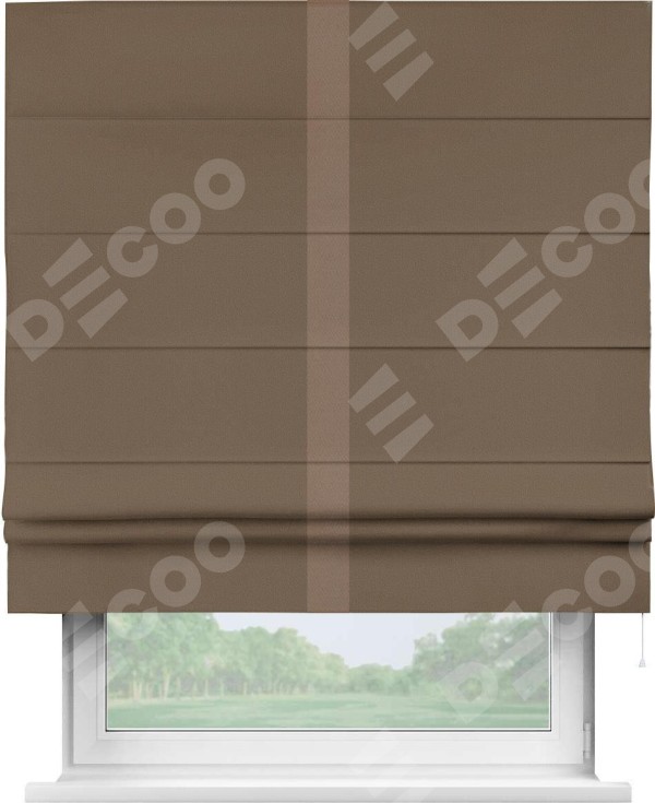 Римская штора «Кортин» для проема, блэкаут однотонный коричневый с кантом Хайвэй