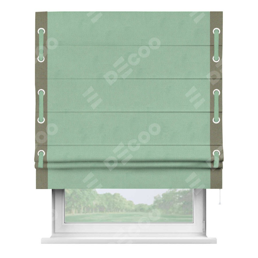 Римская штора «Кортин» для проема, блэкаут однотонный ментоловый с кантом Стрим Дуо (люверсы с пояском)