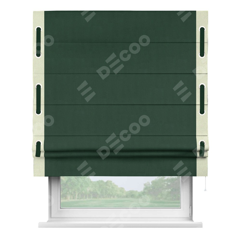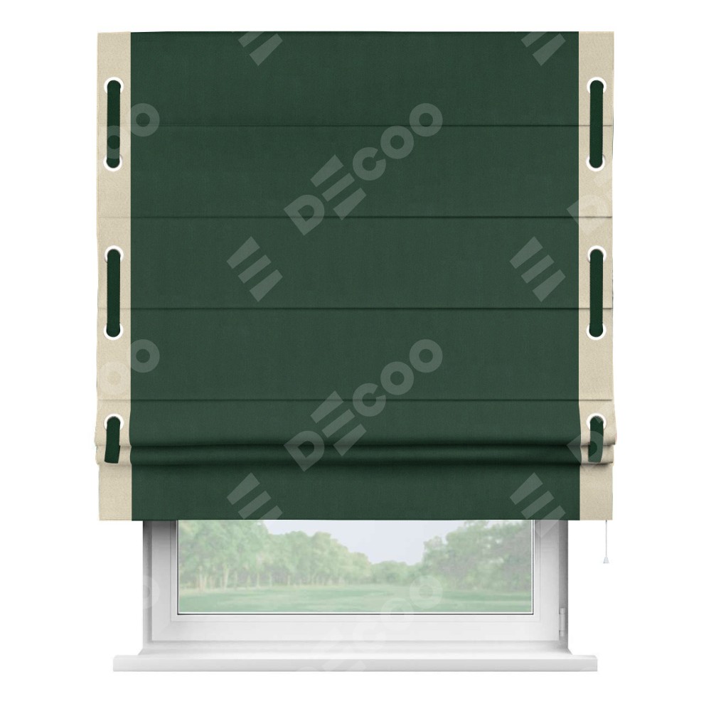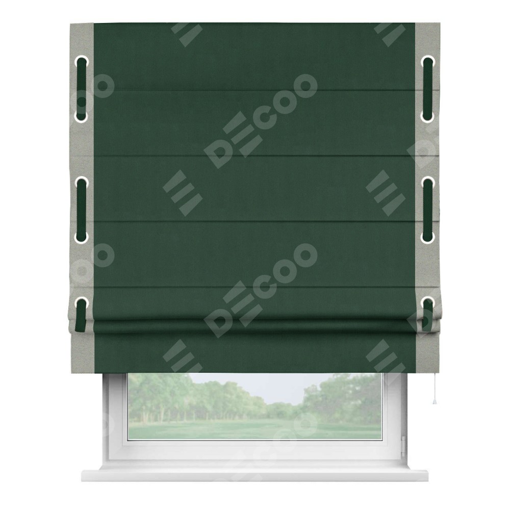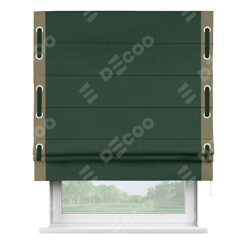 Римская штора «Кортин» для проема, блэкаут однотонный зелёный с кантом Стрим Дуо (люверсы с пояском)
