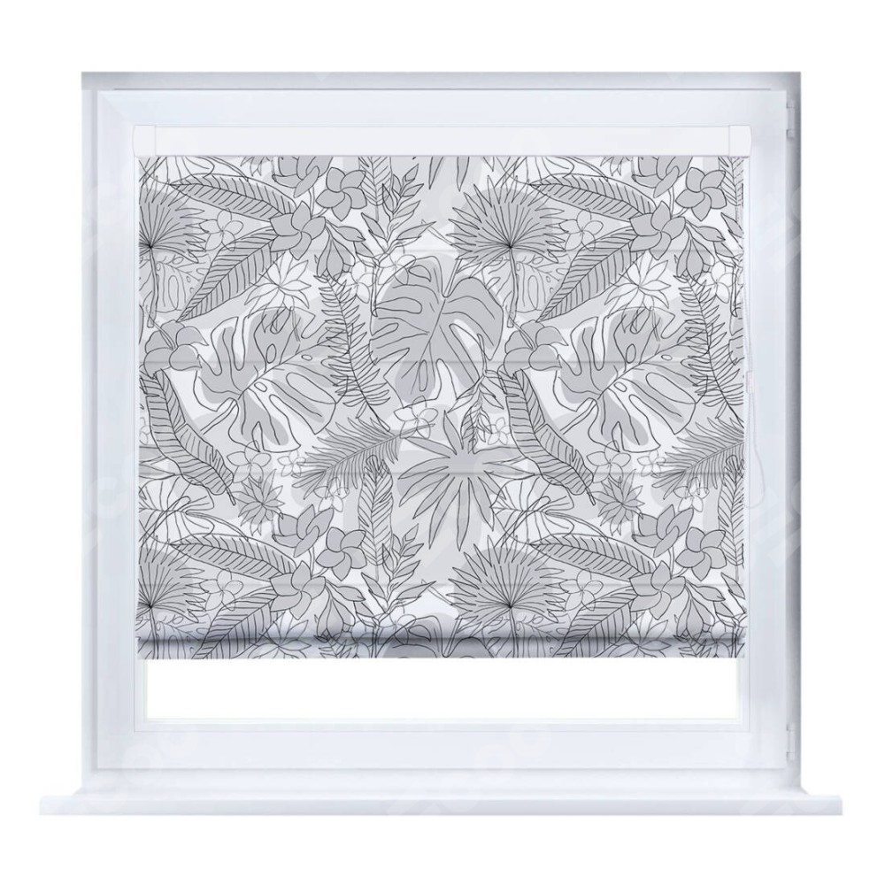 Римская штора производителя «Cortin», устанавливается на створку окна, пошита из ткани блэкаут с нанесением сублимационной печати «Тропический лес». Штора шьётся по индивидуальным размерам, для данного типа римской шторы возможная ширина от 35 до 150 см., высота до 250 см.