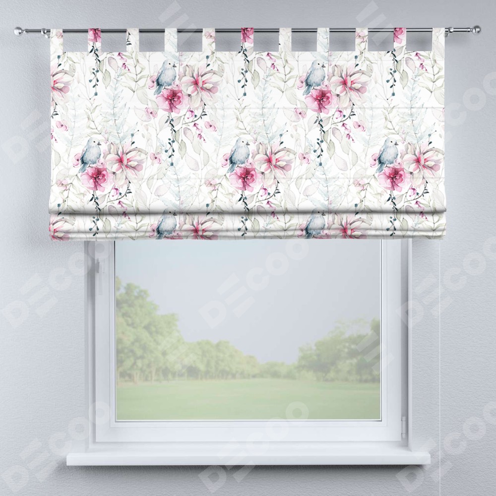 Римская штора производителя «Cortin», используется для проёма, пошита из ткани блэкаут с нанесением сублимационной печати «Мелодия цветов». Данная модель пошита на петлях, комплектуется на выбор круглым карнизом и подходит для монтажа на стену. Римская штора на петлях имеет простую систему регулировки высоты, отличительным преимуществом данной модели является простой способ монтажа. Достаточно повесить ее на трубу и штора готова!