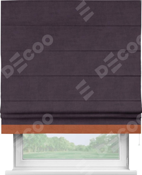 Римская штора «Кортин» для проема, вельвет тёмно-фиолетовый с кантом Джестер