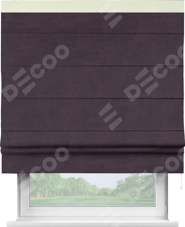 Римская штора «Кортин» для проема, вельвет тёмно-фиолетовый с кантом Кинг
