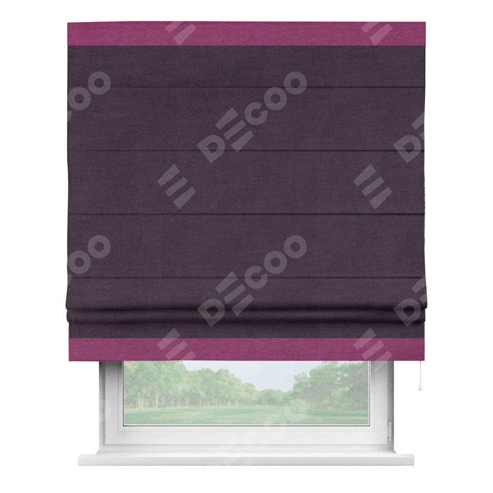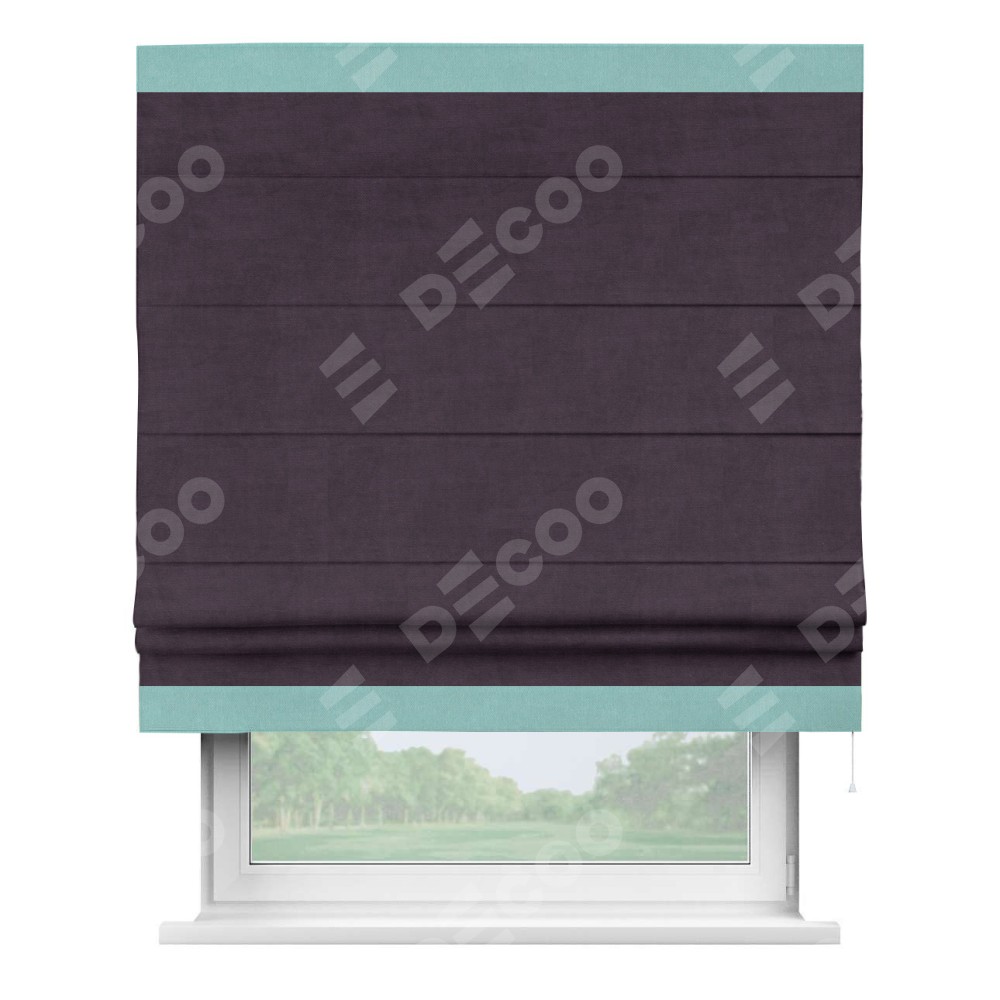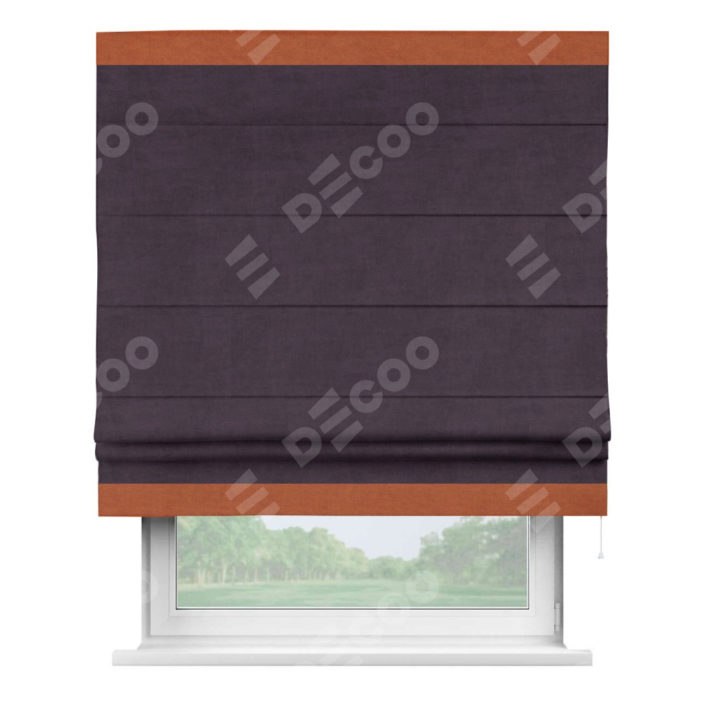 Римская штора «Кортин» для проема, вельвет тёмно-фиолетовый с кантом Горизонт