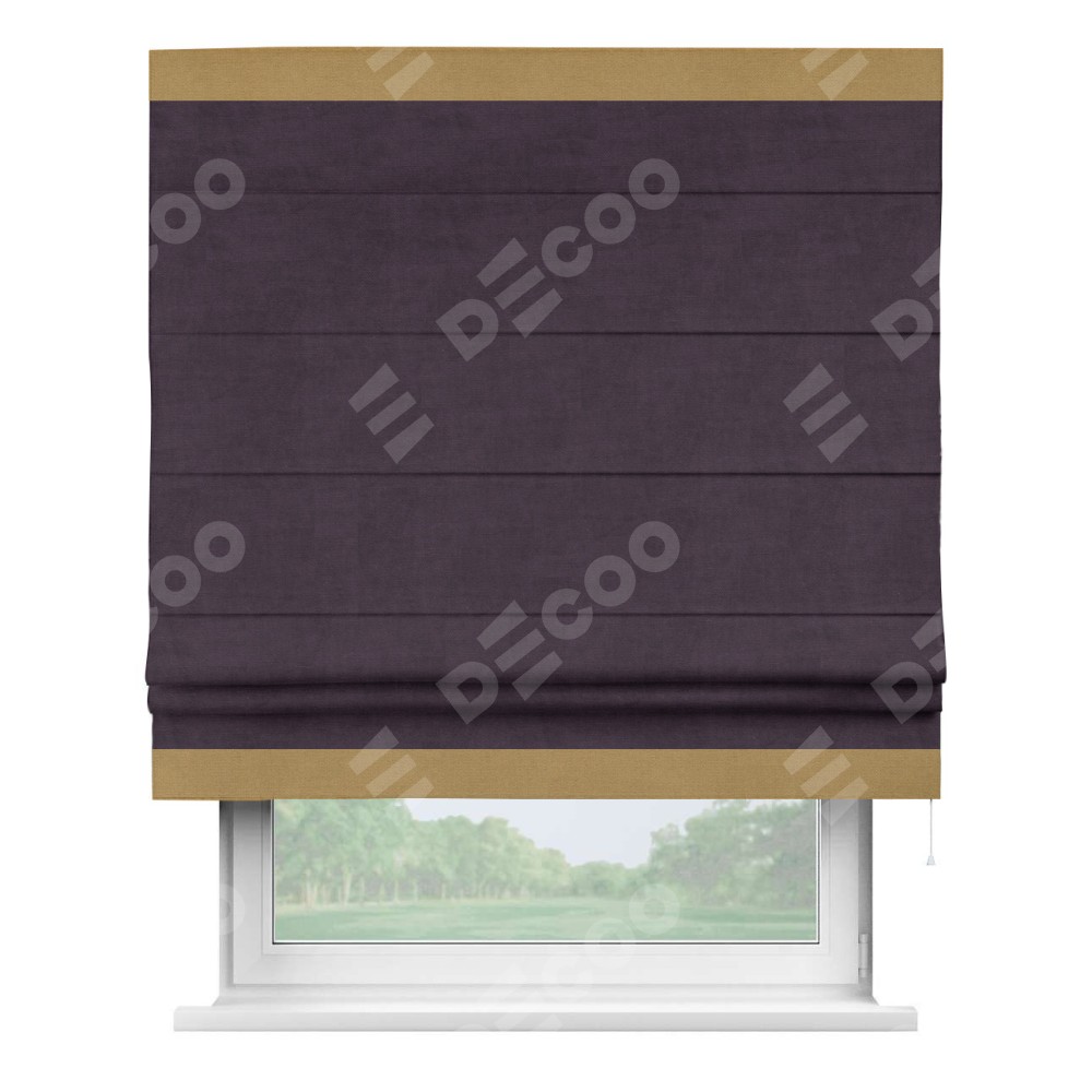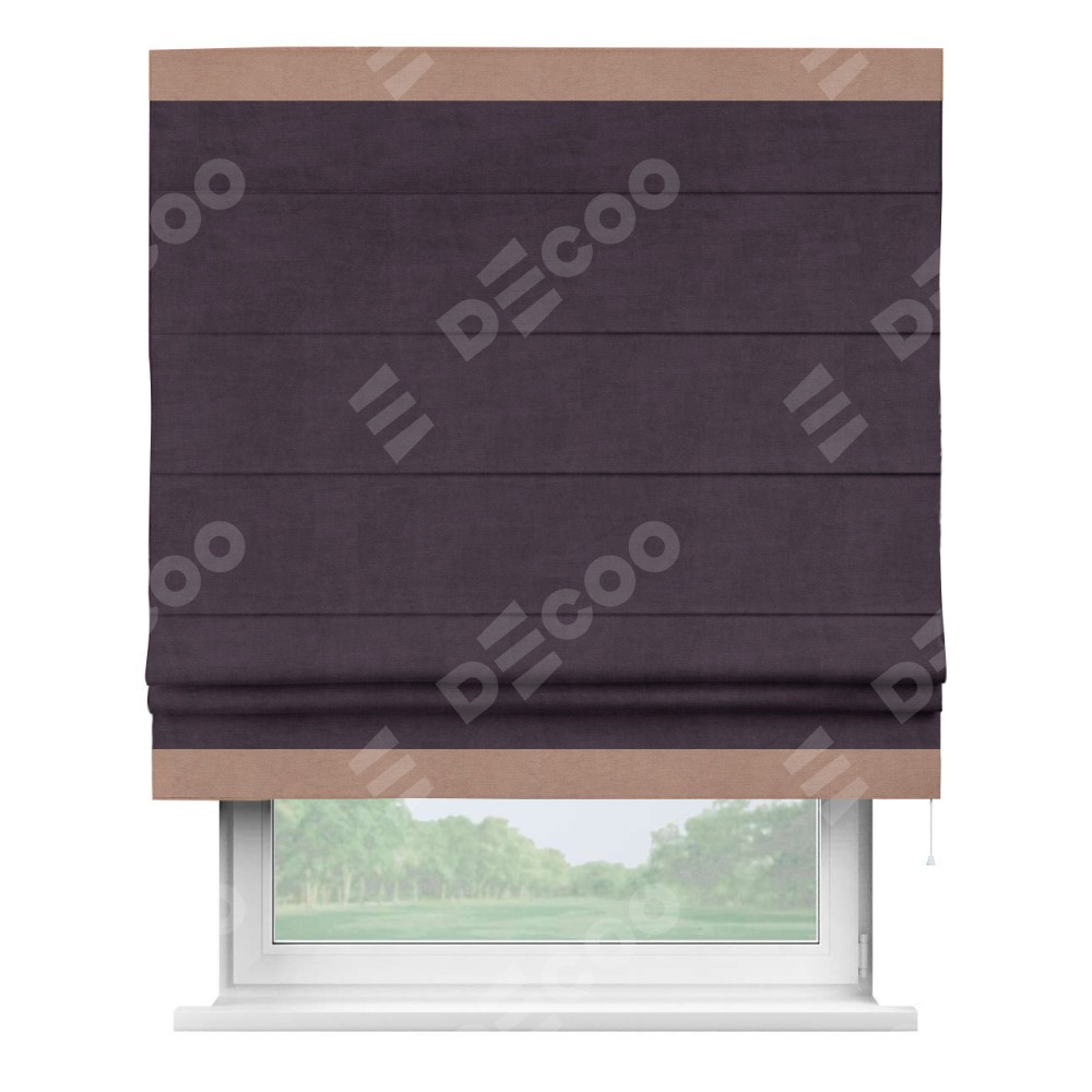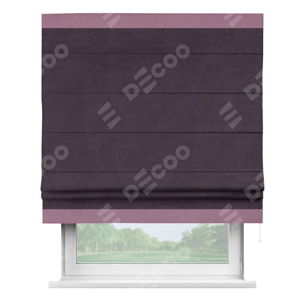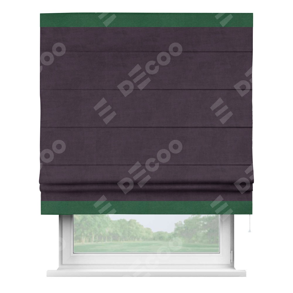 Римская штора «Кортин» для проема, вельвет тёмно-фиолетовый с кантом Горизонт